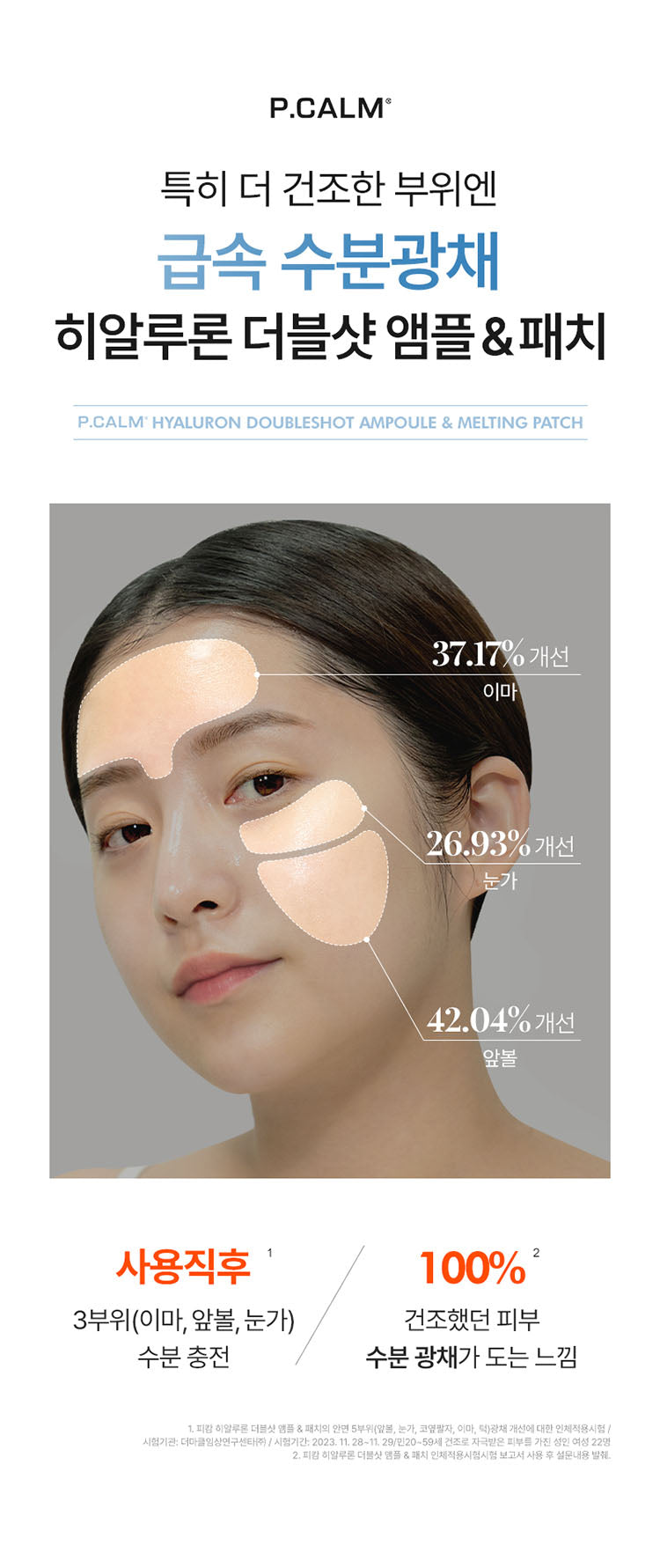 Indulge in the ultimate hydration experience with the P.CALM Hyaluron Doubleshot Ampoule & Melting Patch, and enjoy visibly radiant, plump, and hydrated skin.