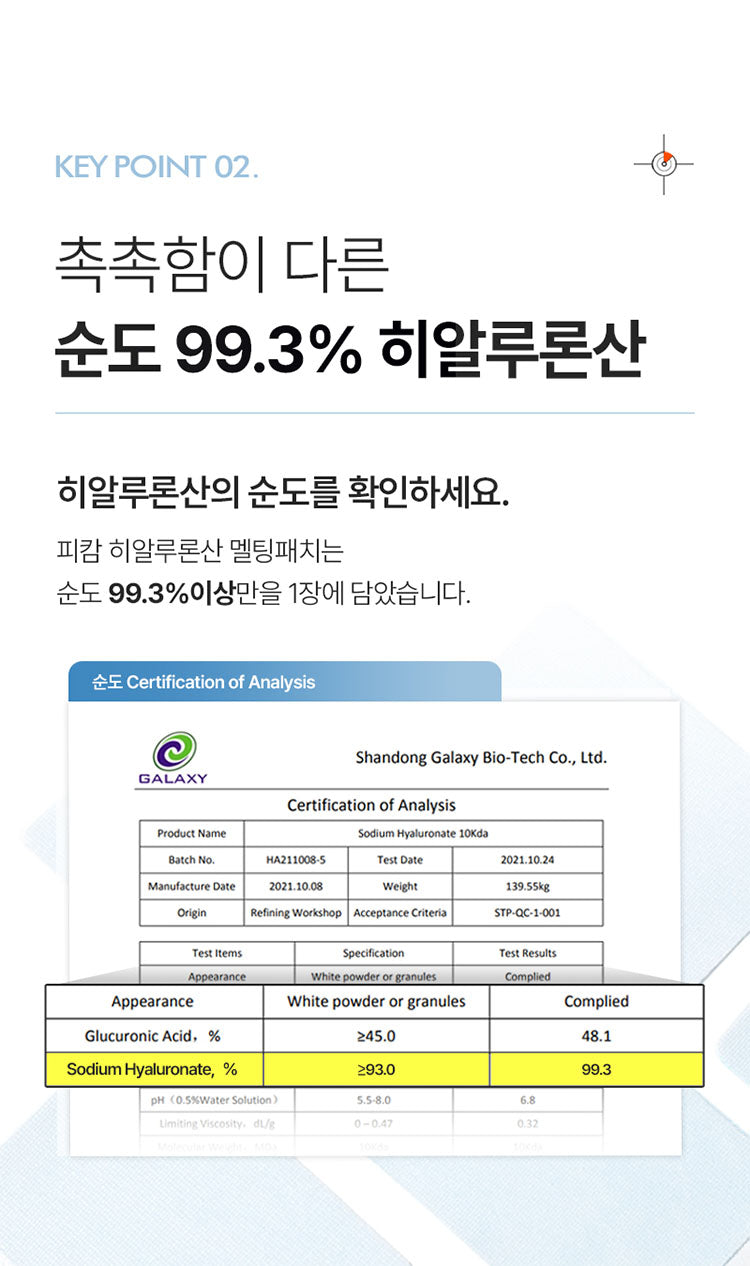- Melting Patch Technology: The melting patch, also composed of 99.3% Hyaluronic Acid, works in tandem with the ampoule to amplify hydration. It dissolves seamlessly into the skin, enhancing the moisturizing effect and leaving your complexion glowing and nourished.