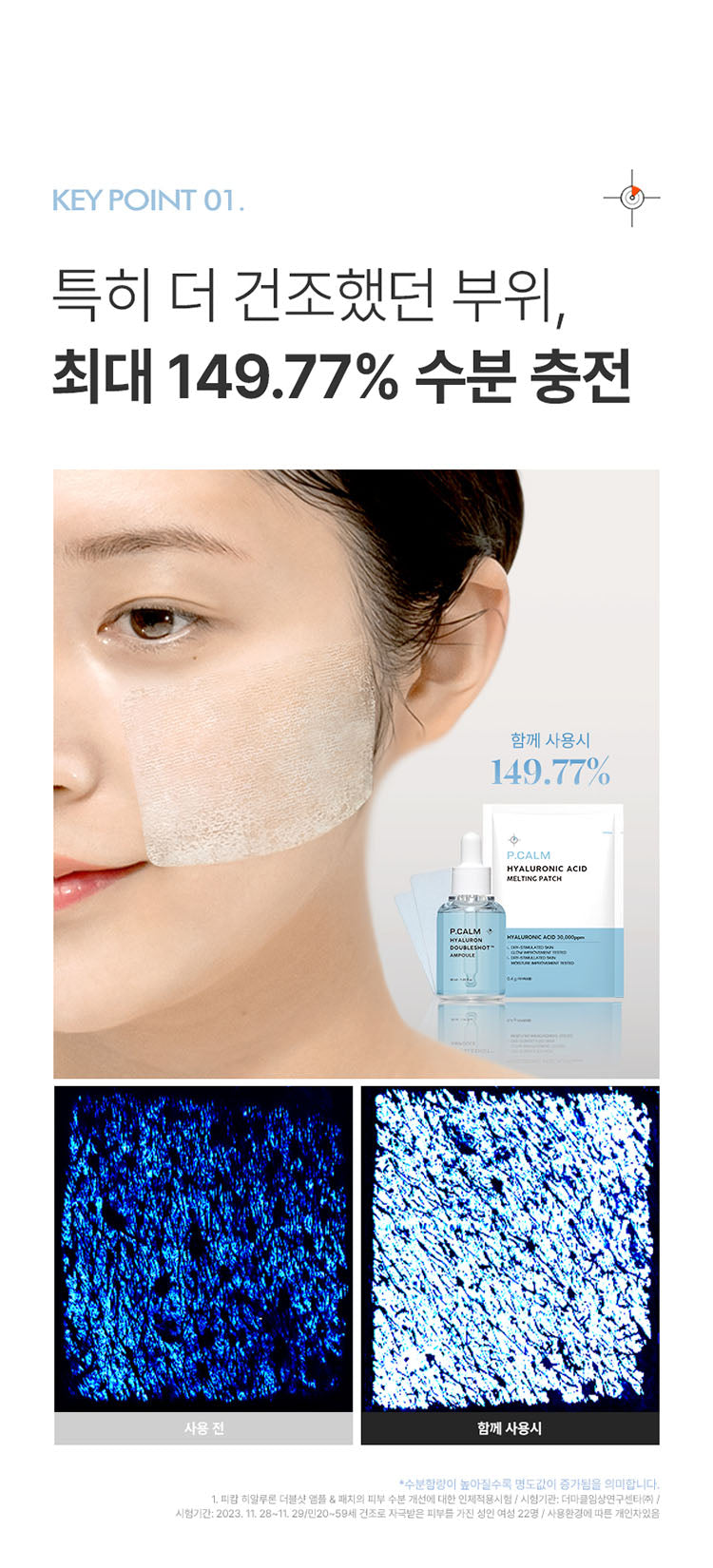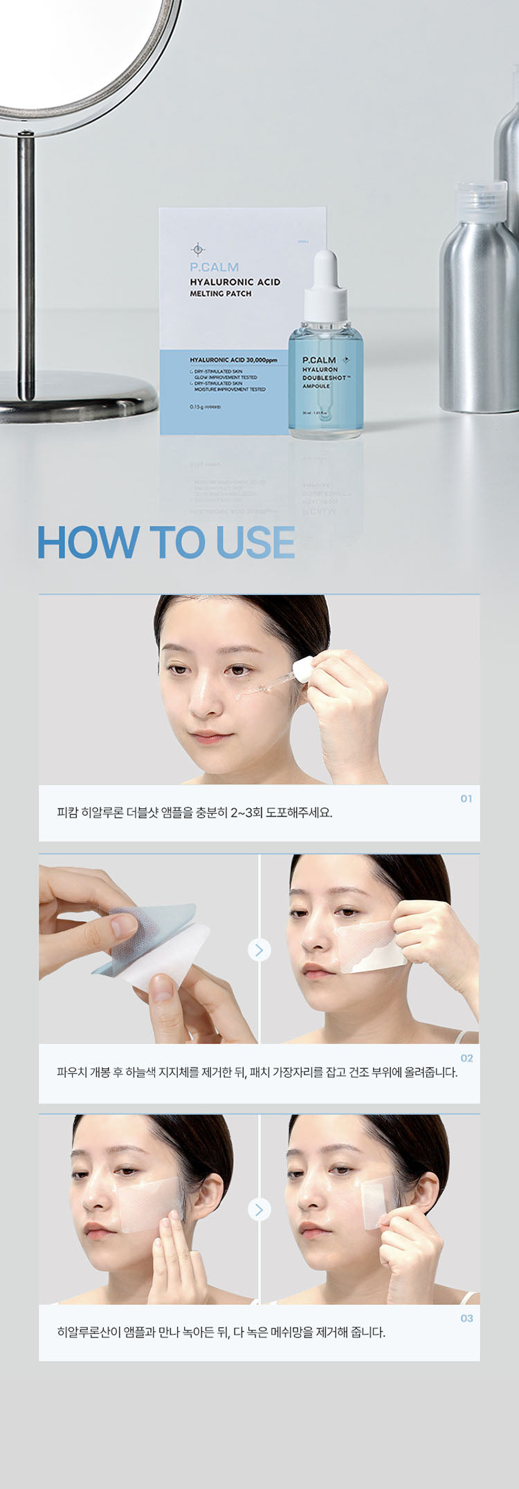Indulge in the ultimate hydration experience with the P.CALM Hyaluron Doubleshot Ampoule & Melting Patch, and enjoy visibly radiant, plump, and hydrated skin.