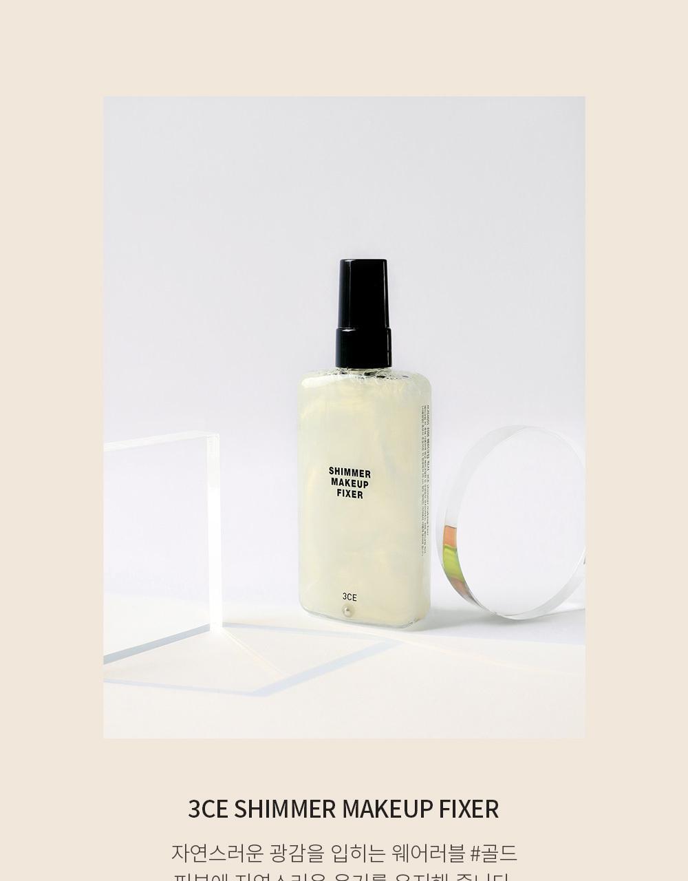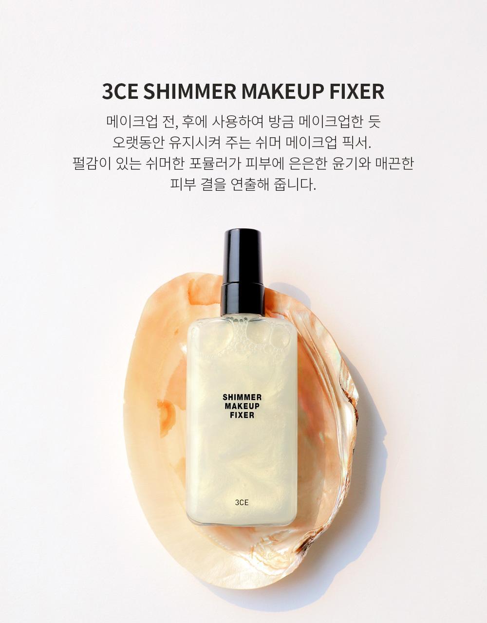 Use the 3CE Shimmer Makeup Fixer to keep your makeup looking pristine and radiant all day long.