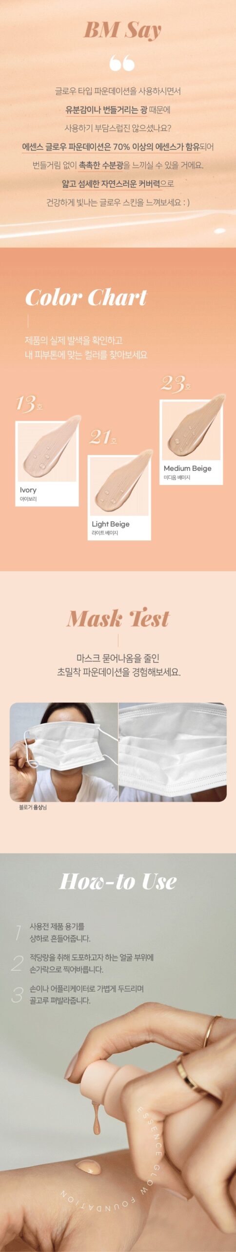 AGE20’s Essence Glow Foundation is designed to keep your skin moisturized and glowing for up to 30 hours. This foundation offers a smooth, non-sticky application that adheres lightly but firmly to the skin, ensuring an even and soft finish without caking or separation.