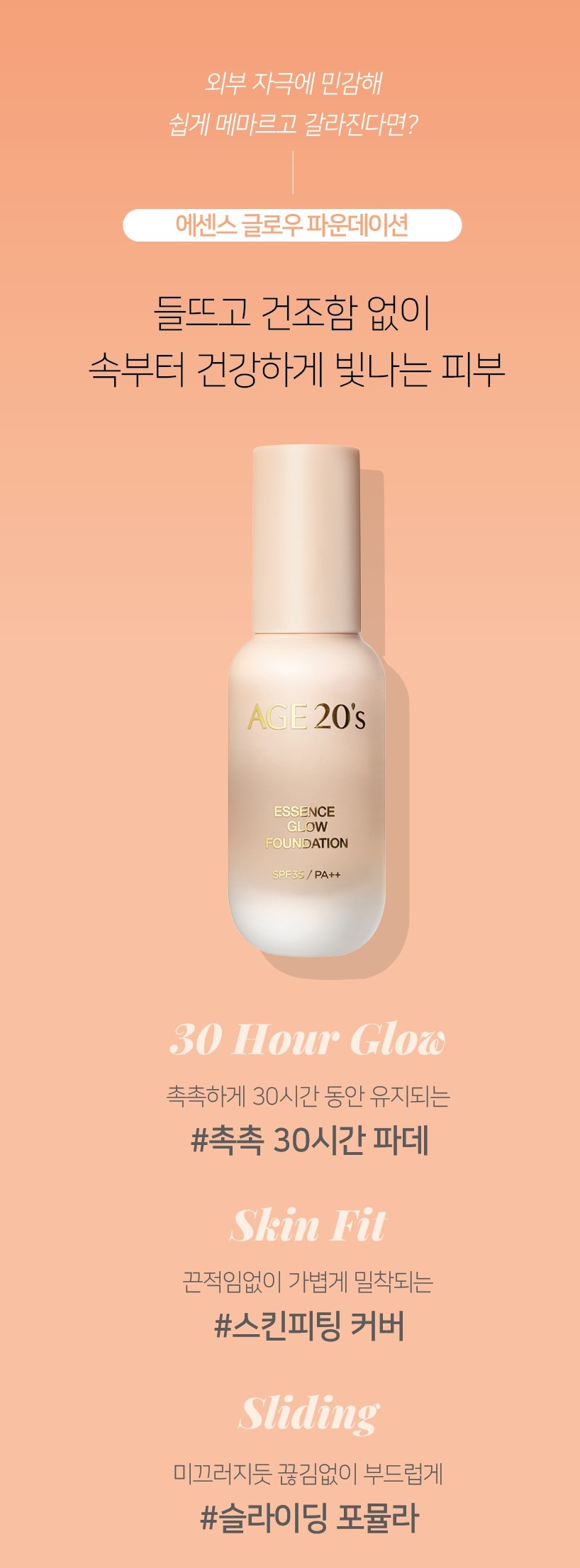 AGE20’s Essence Glow Foundation is designed to keep your skin moisturized and glowing for up to 30 hours. This foundation offers a smooth, non-sticky application that adheres lightly but firmly to the skin, ensuring an even and soft finish without caking or separation.