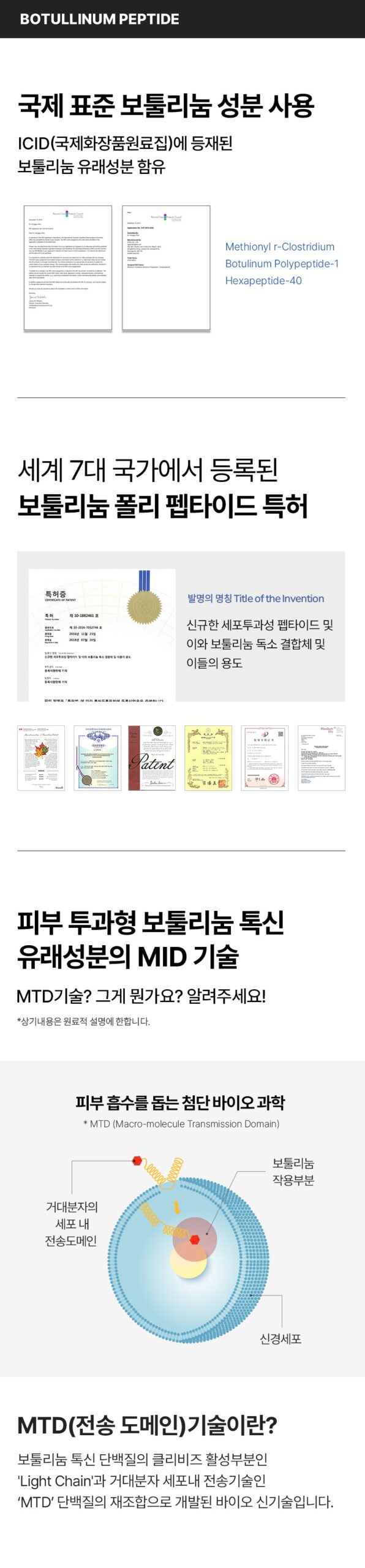 - Uses ICID-registered botulinum-derived peptides