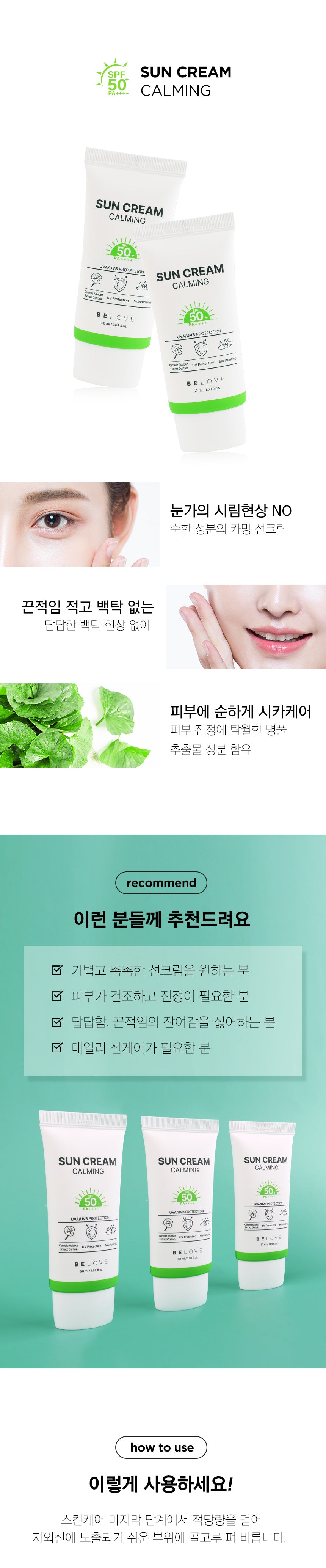 The centella asiatica component soothes the skin and forms a moisturizing film to protect the skin.