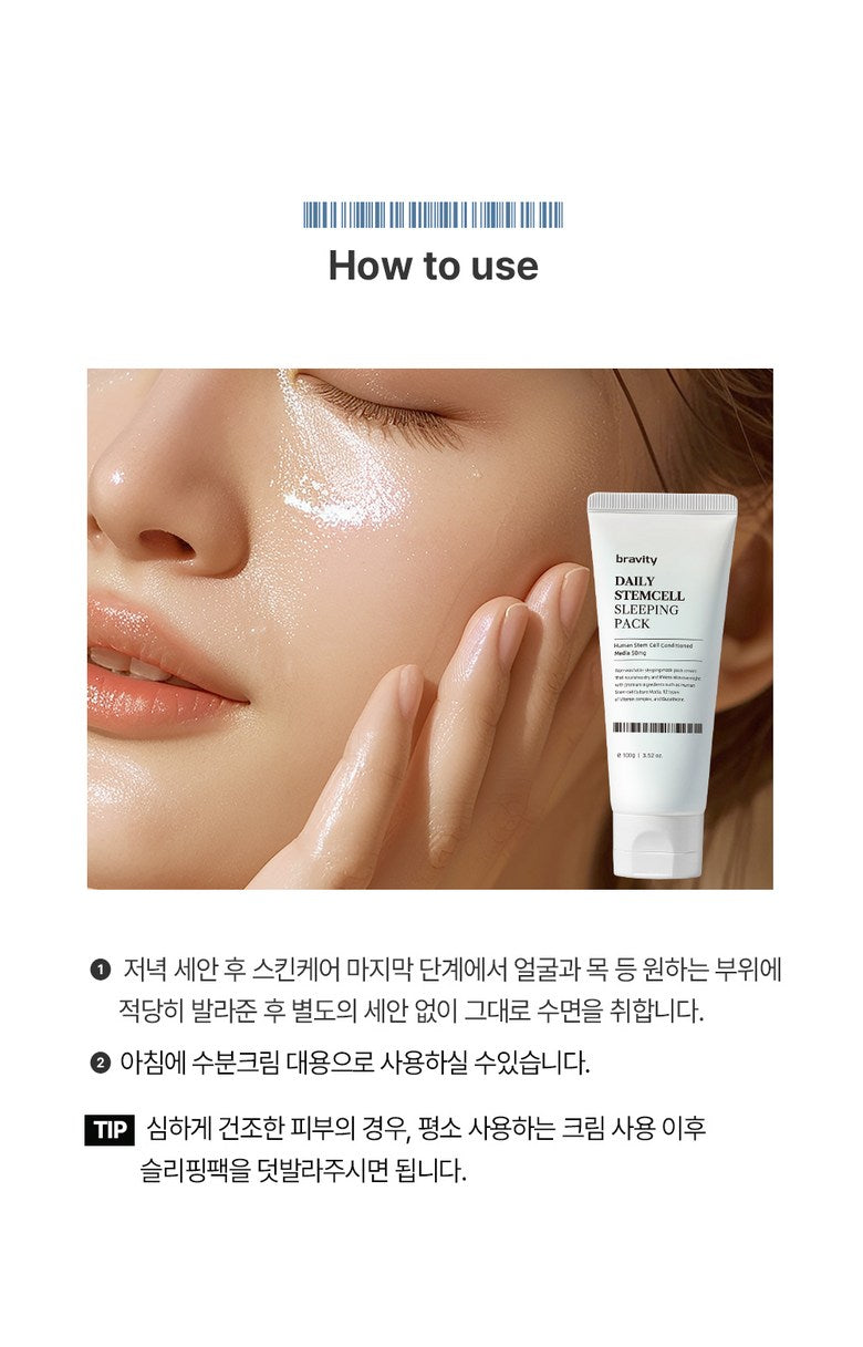 Discover the power of advanced stem cell skincare with Bravity DAILY STEMCELL SLEEPING PACK. Achieve deep hydration, brightened skin, and anti-aging benefits—all in your sleep!
