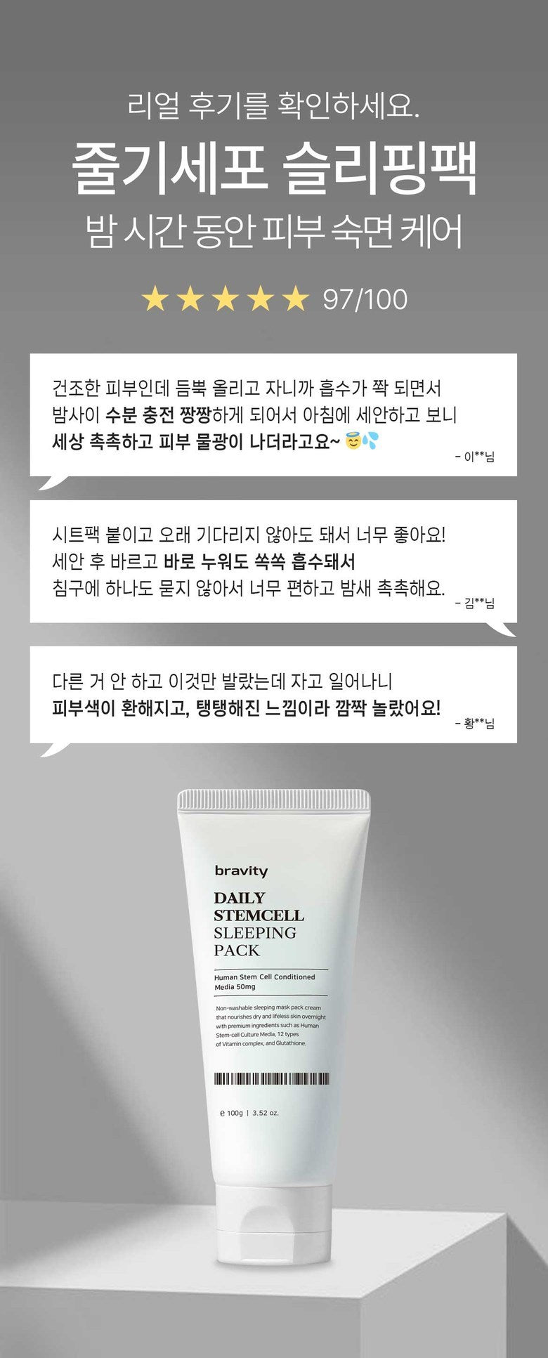 10 reviews for Bravity DAILY STEMCELL SLEEPING PACK 100g