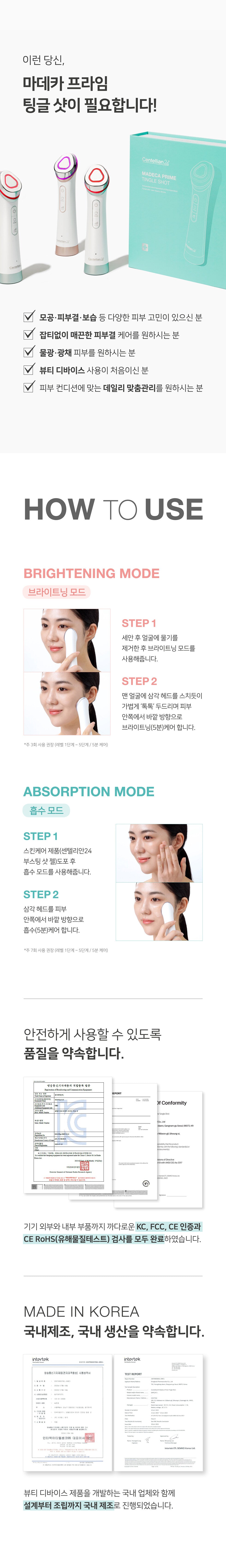 After applying skin care product (Centellian 24 Boosting Shot Gel), use absorption mode.