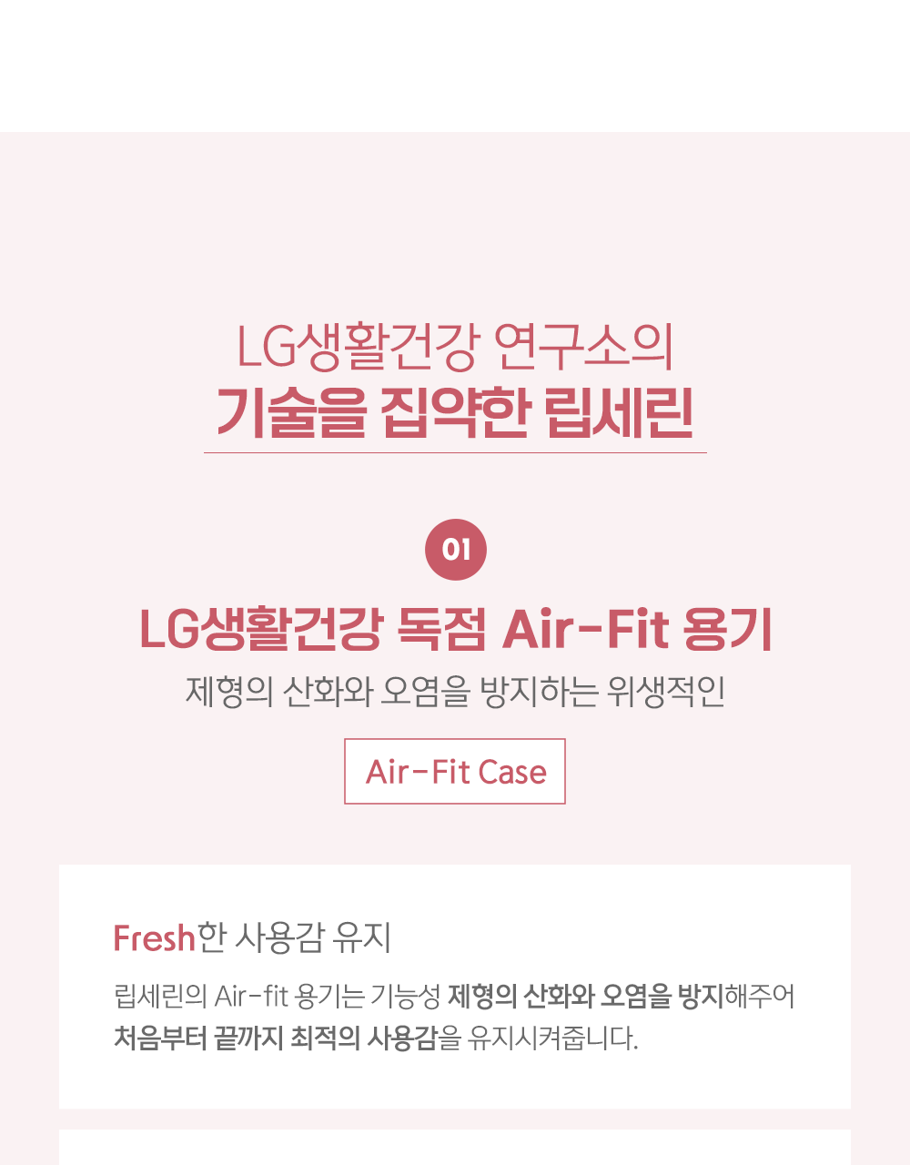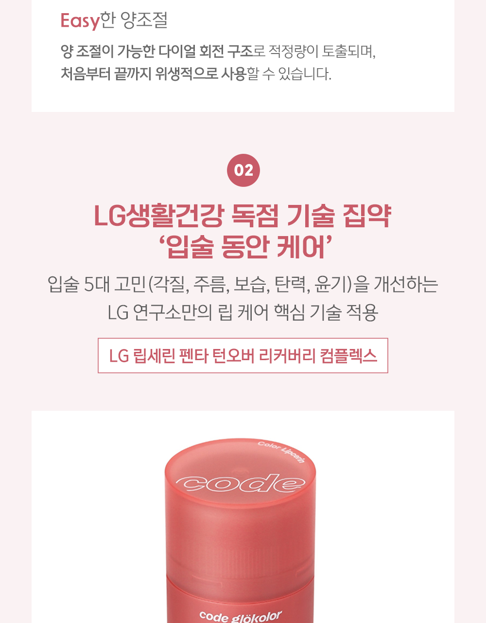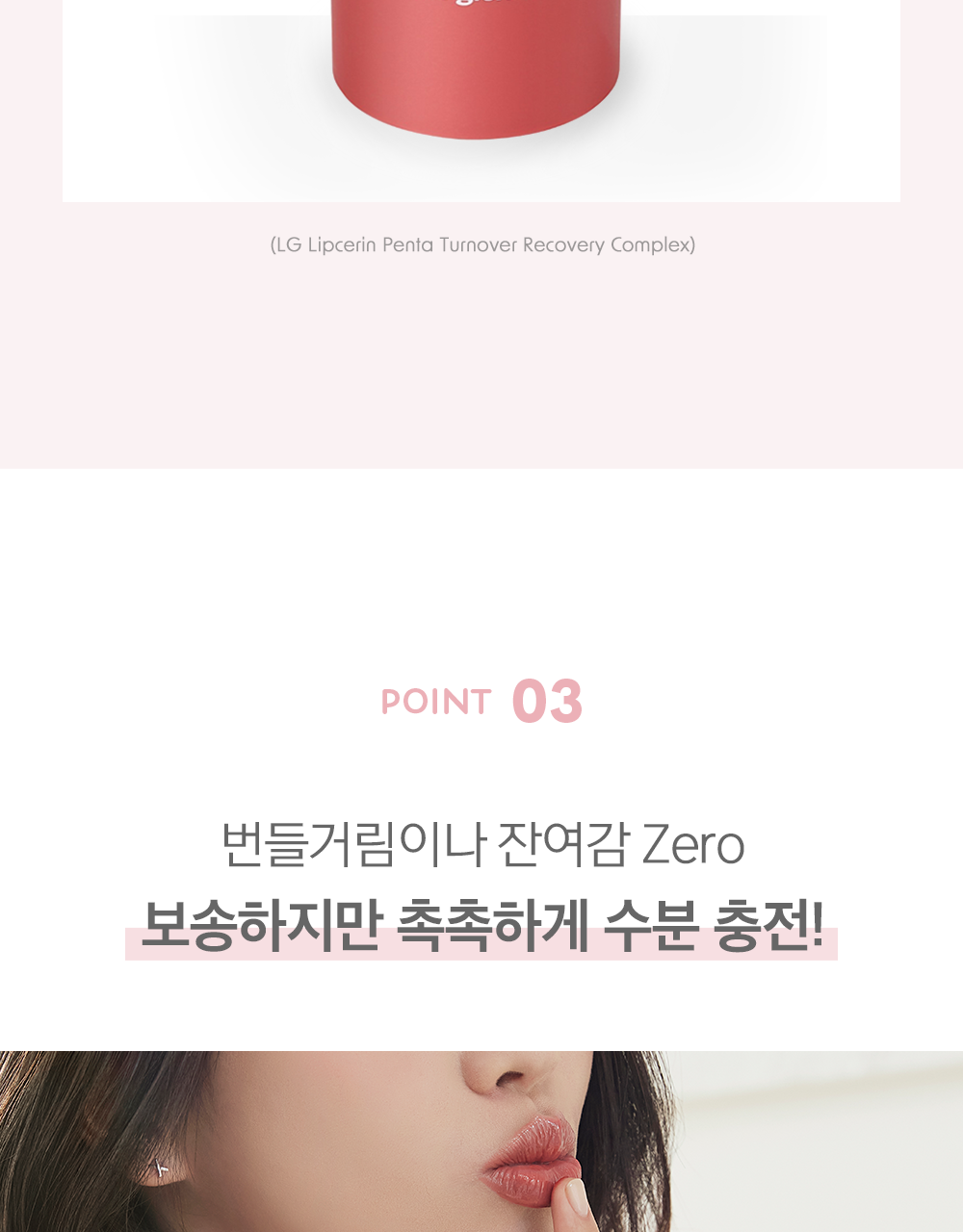Incorporating LG Lipserin Penta Turnover Recovery Complex, our lip care formula elevates your routine by targeting dead skin, wrinkles, moisture, elasticity, and shine, all in one. Experience the pinnacle of lip rejuvenation technology designed to give you soft, supple, and irresistibly glossy lips without any greasiness or residue.