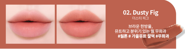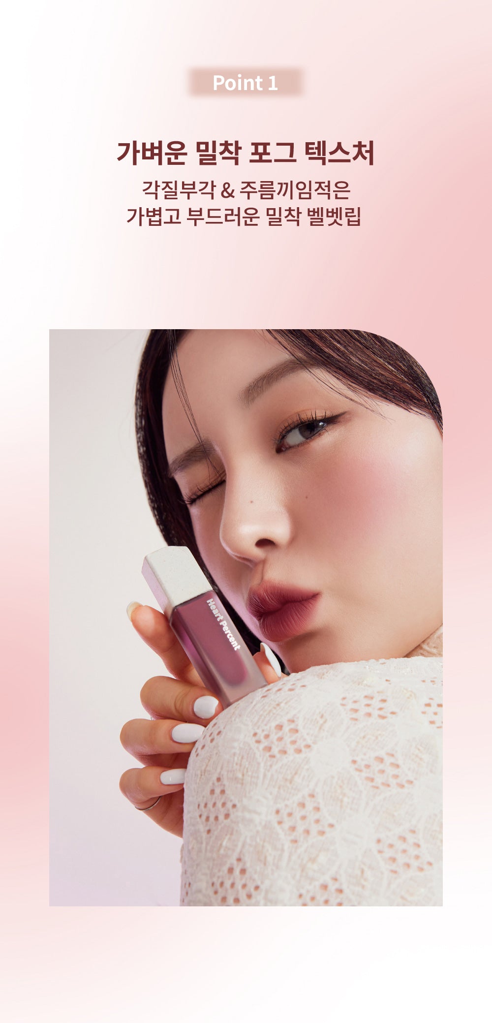 Experience a light, velvety texture that adheres softly to your skin. This product stands out with its light adhesion and fog-like texture, making it perfect for a velvet lip look that minimizes the appearance of dead skin cells and wrinkles. It functions similarly to a primer, offering a smooth and soft adhesion without the clumpiness often associated with dry matte lipsticks.
