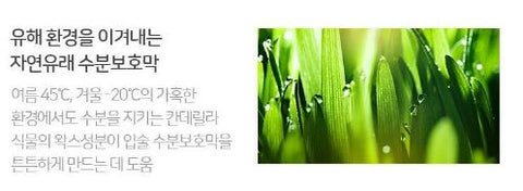 Candelilla plant wax component that keeps moisture even in harsh environments of 45°C in summer and -20°C in winter helps to strengthen the lip moisture barrier