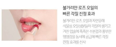 Bulgarian rose oil and naturally-derived vegetable oil ingredients provide moisture and rich nutrition to dry and rough lips at the same time, providing a quick calming effect on dead skin cells.