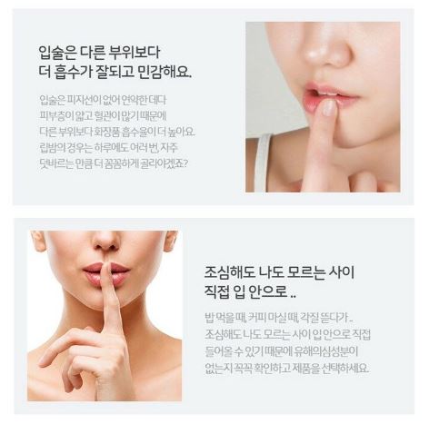 The lips are soft because there are no sebaceous glands, and because the skin layer is thin and there are many blood vessels, the absorption rate of chemical products is higher than other parts.