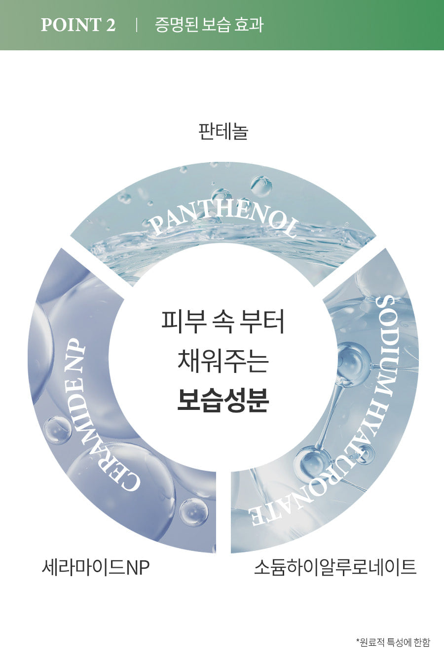 - Panthenol, Ceramide NP, and Sodium Hyaluronate work together to upgrade your skin’s moisture barrier and lock in hydration.