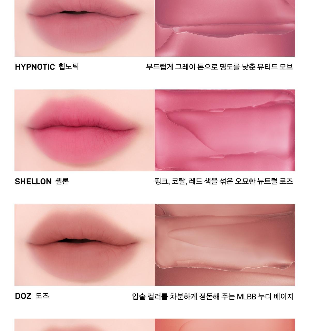 - Cool Tone: Achieve a muted cherry lip with Base HYPNOTIC + Point CARAVE.