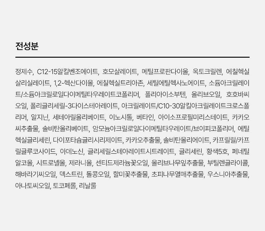 - Cacao Extract – Protects against moisture loss & wrinkles