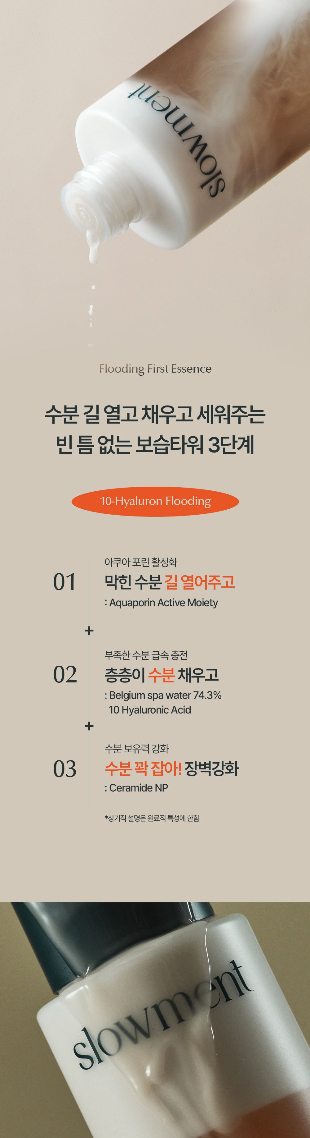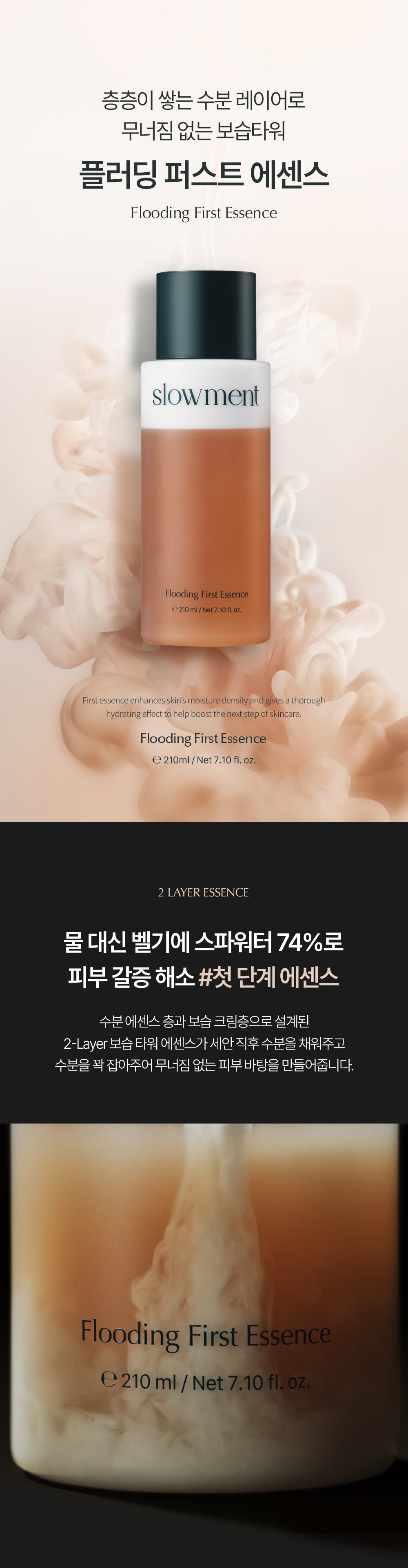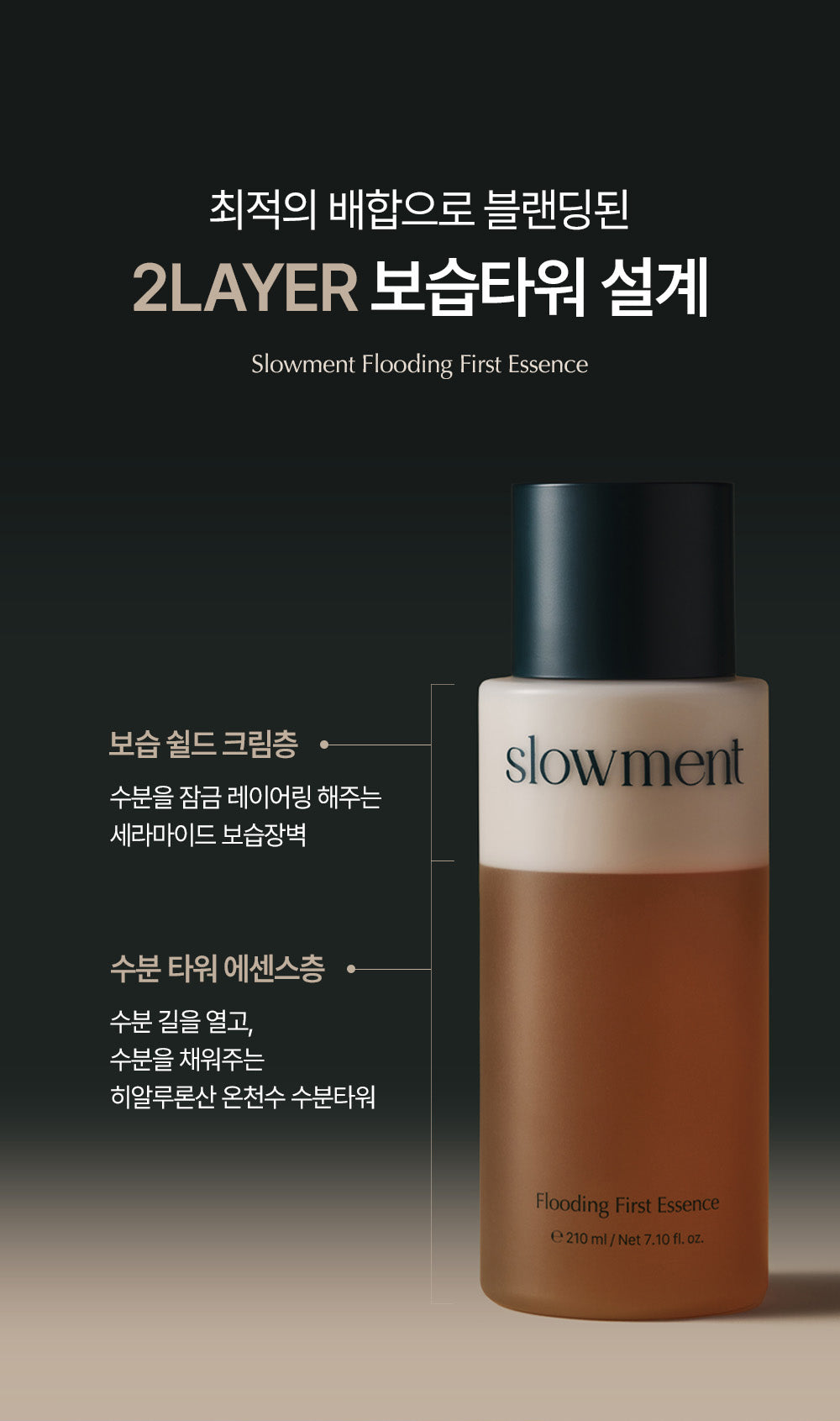Elevate your skincare with Slowment Flooding First Essence, a two-layer moisture tower essence designed to deliver intense hydration and reinforce your skin barrier from the very first step of your routine.