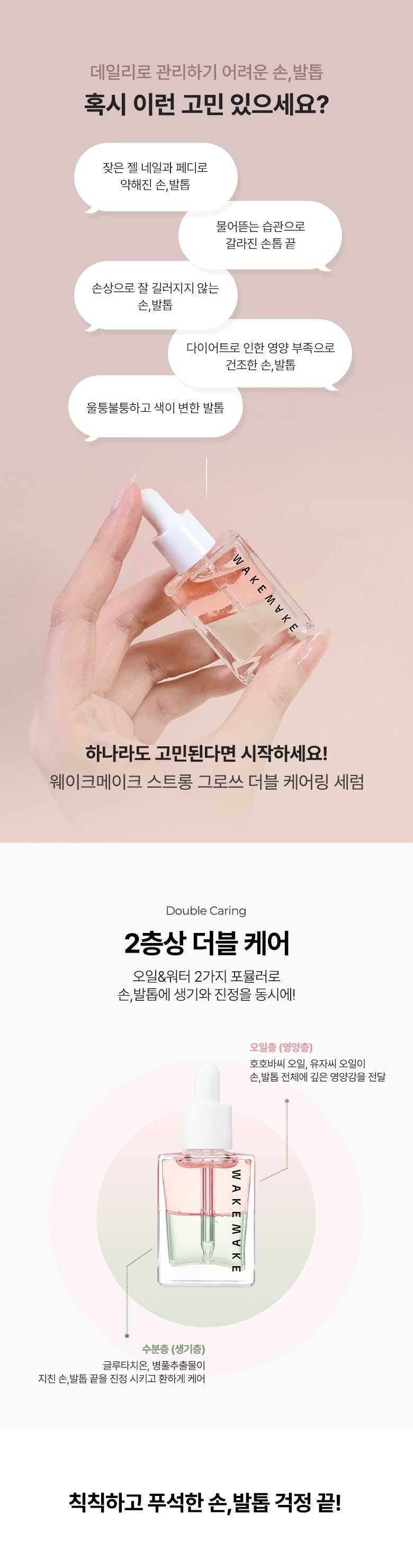 The WAKEMAKE Strong Growth Double Caring Serum is the ultimate solution for vibrant, hydrated hands and nails. This double-layered formula offers essential nutrients and moisture to dull, brittle nails, transforming your nail care routine.