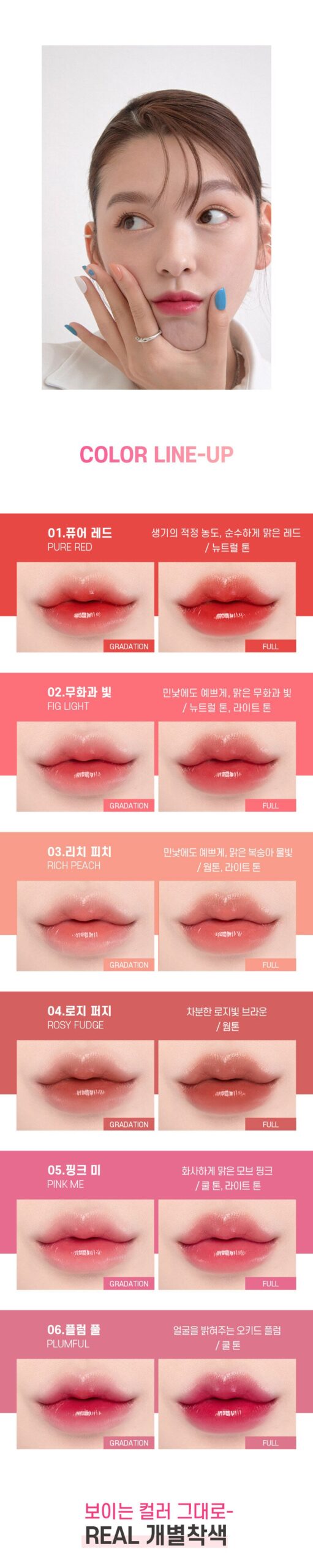 A new formulation that maximizes moisture and moisture retention, completes a beautiful blur lip with a natural moisture blur effect.