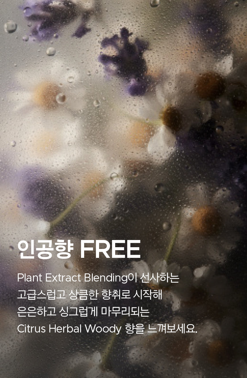 Free from artificial scents, this product is delicately infused with a PLANT EXTRACT BLENDING, offering a luxurious and invigorating citrus herbal woody aroma. This subtle yet refreshing scent ensures a delightful and fresh sillage.