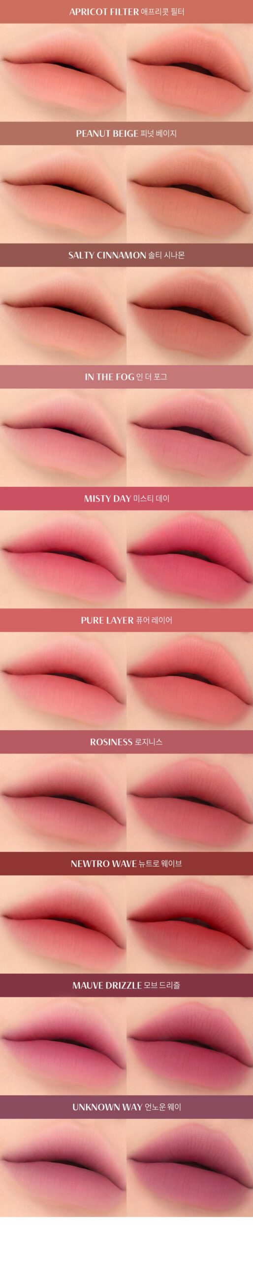 Tags: _Hi_chtgptapp_optimised_this_description-generator, _Hi_chtgptapp_saved_this_description-generator, APRICOT FILTER, Beauty, blur effect, Cosmetic, IN THE FOG, Lips, Lipstick, Makeup, matte lipstick, MAUVE DRIZZLE, MISTY DAY, NEWTRO WAVE, PEANUT BEIGE, PURE LAYER, ROSINESS, SALTY CINNAMON, soft application, UNKNOWN WAY