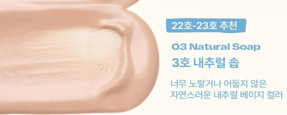 - Natural Soap (For skin tones 22-23): A natural beige that is neither too yellow nor too dark, offering the perfect balance for a subtle glow.