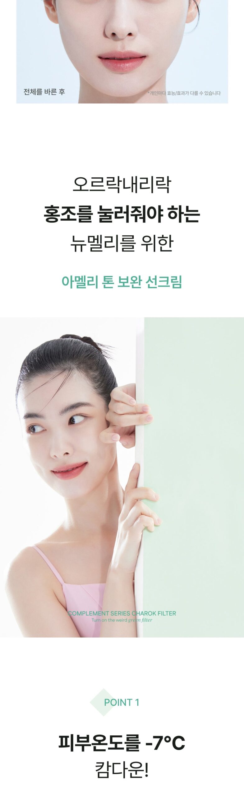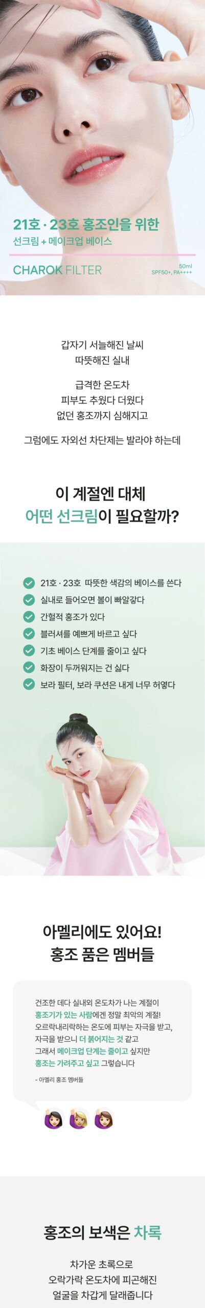 The Ameli Complement Series Filter Charok SPF50+ PA++++ is a gem that caters specifically to those who wrestle with redness in their complexion. I, as a resident of vibrant Budapest, am impressed by its transformative qualities; it feels less like a traditional sunscreen and more akin to an artist’s brush working wonders on your skin canvas. With just one layer applied, my cheeks cool significantly—almost magical—and the refreshing touch of green color correction transforms irritation into natural radiance effortlessly. No thick mask weighs me down here! Daily life seems enhanced thanks to this sleek formulation perfectly meshing functionality with artistry—a lovely staple for busy individuals needing brilliance without fuss.