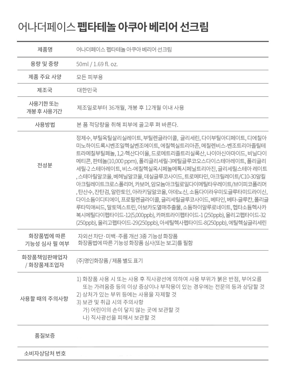 ANOTHER FACE Peptatenol Aqua Barrier Suncream 50ml SPF50+/PA++++