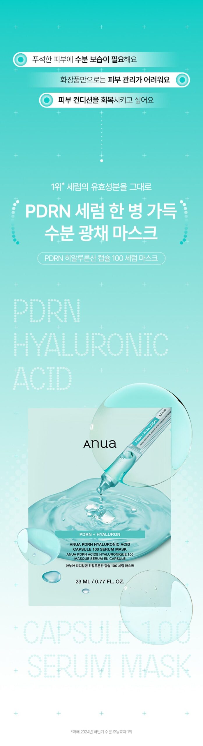 Anua PDRN Hyaluronic Acid Capsule 100 Serum Mask (23ml x 5ea)
