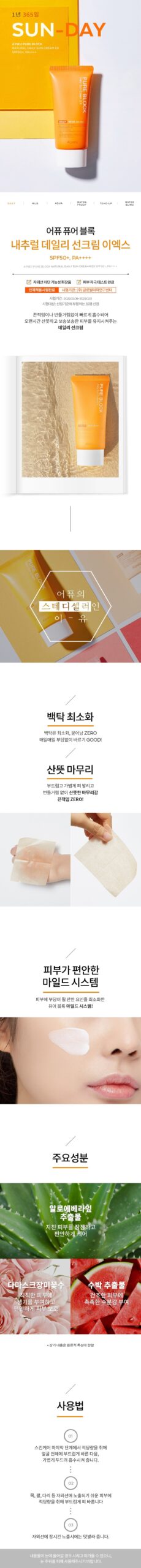 - Pure Block Natural Daily Sun Cream SPF45 PA+++ has been renewed as EX version with broad spectrum SPF50+ PA++++ provided.