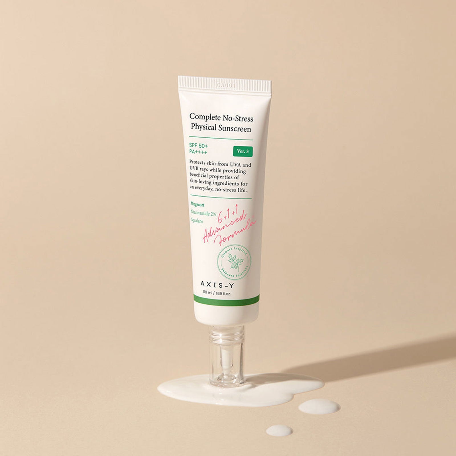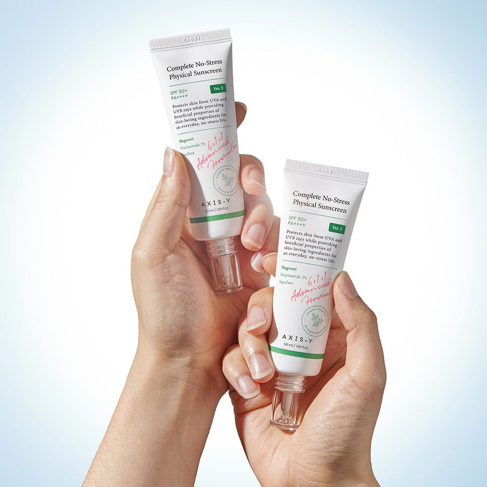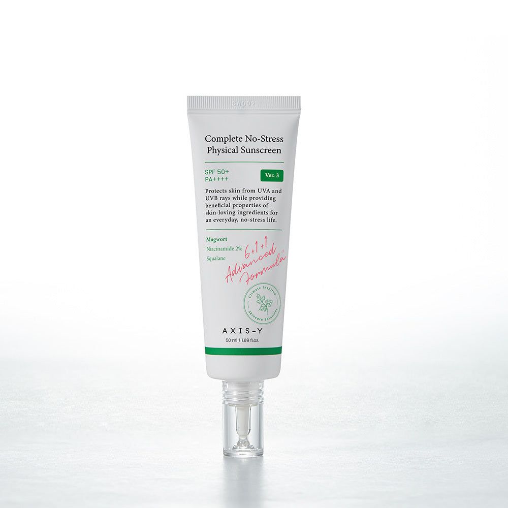 The AXIS-Y Complete No-Stress Physical Sunscreen V.3, now in a 50ml package, is an innovative Mugwort-based formula. It now includes 2% Niacinamide and Squalane, providing superior protection from UVA and UVB rays while delivering the healing benefits of skin-friendly ingredients. The formulation has been recently upgraded, with improvements made based on community feedback.