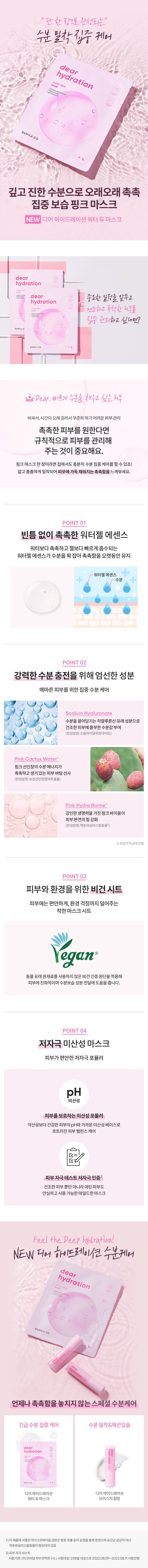 As a skincare enthusiast residing in sunny Los Angeles, I stumbled upon the Banila Co Dear Hydration Water Dew Mask while exploring new beauty solutions to battle my perpetual dry skin. It promises intensive moisture and did not disappoint! The moment I unwrapped the delicate pink mask, an irresistible scent wafted up—it’s reminiscent of gentle summer florals. Unlike many masks that sit on top without delivering results, this water gel essence glided onto my face seamlessly, absorbed almost immediately—like fresh rain soaking into parched soil—and left behind an invigorating glow long after removal. While products can sometimes feel overhyped or overly perfumed for sensitive faces (I’m looking at you *over-the-counter creams*), this was neither; just hydration power through natural elements like Pink Cactus Water™ blending impeccably with sodium hyaluronate-infused properties.