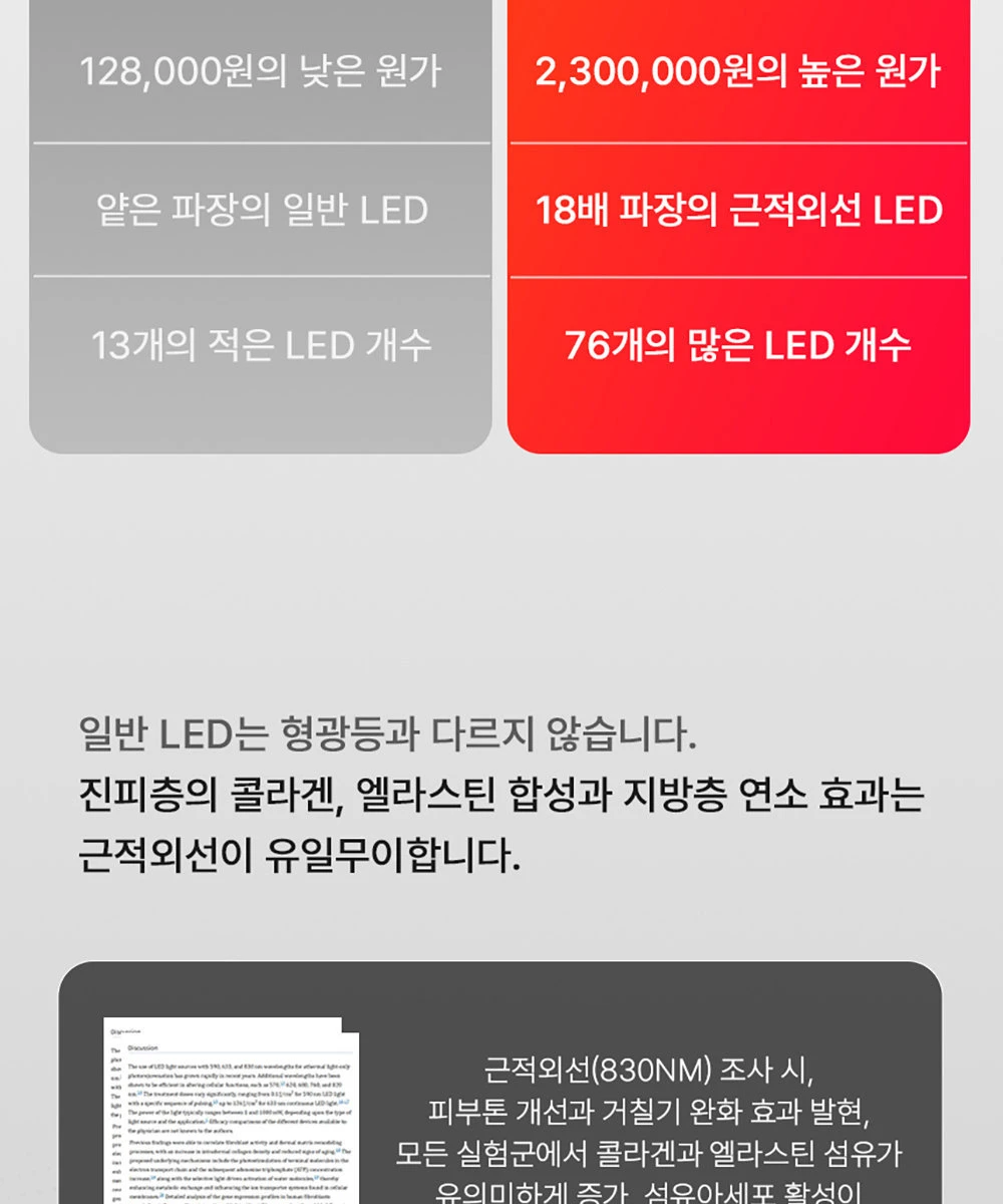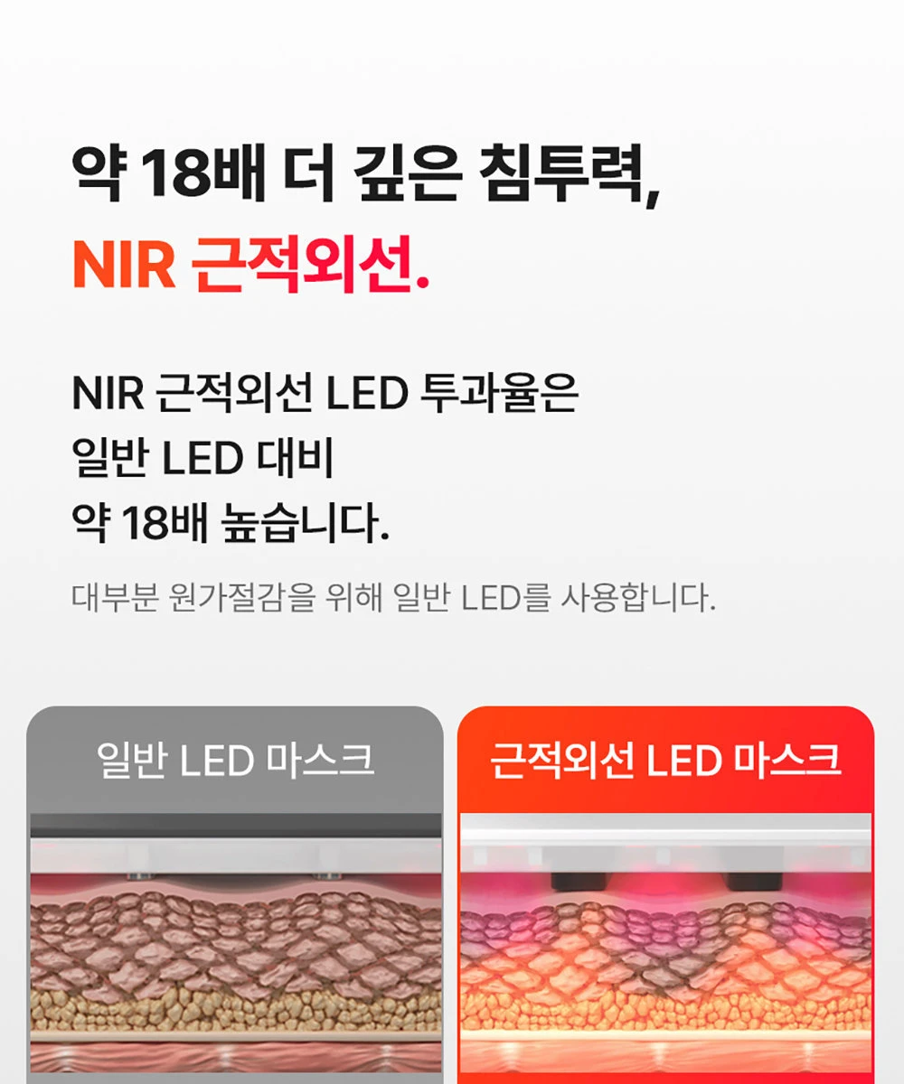 NIR Near-Infrared LED has 18x deeper penetration than standard red LED.