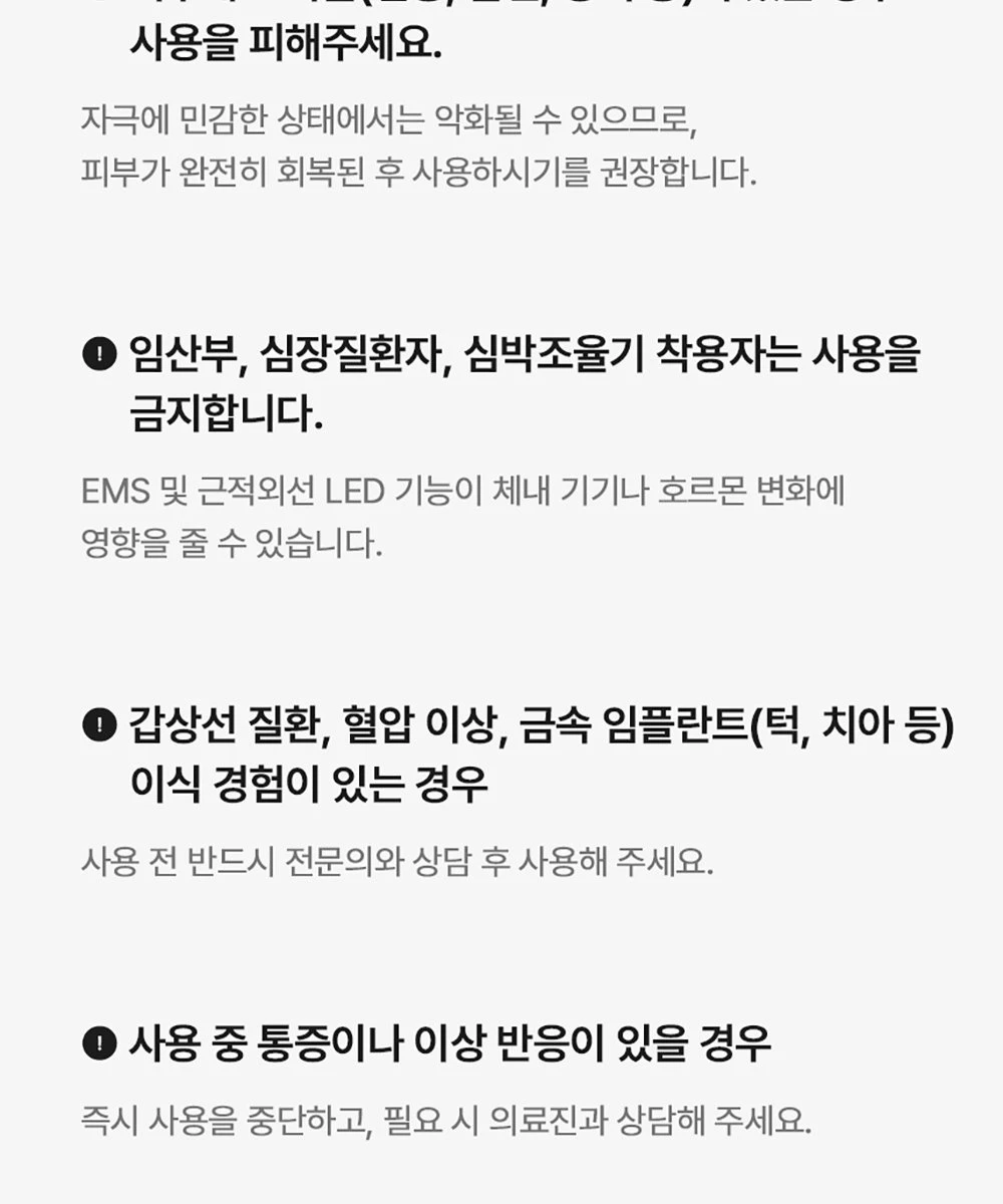 Don’t use if you have skin issues like inflammation or wounds