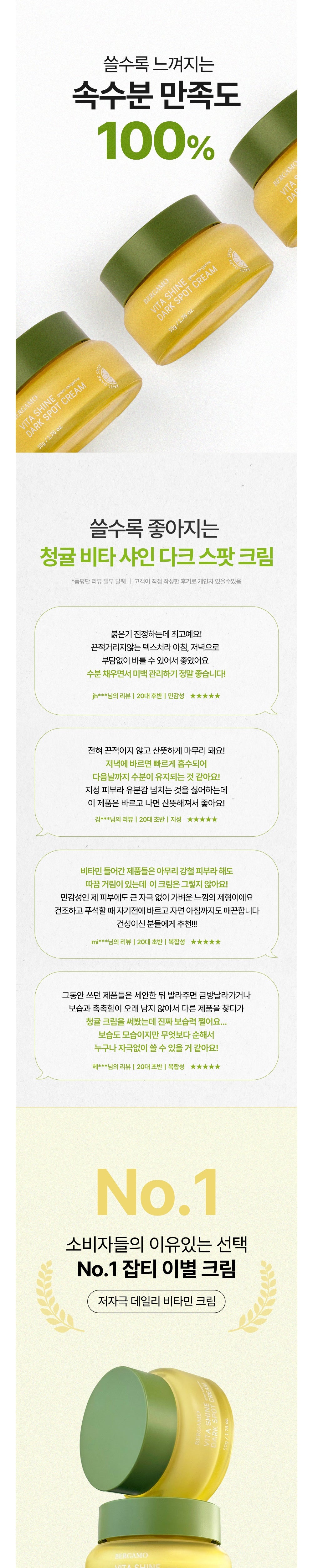 Let me tell ya, the ingredient that really had my attention in the BERGAMO Green Tangerine Vita Shine Blemish Cream is definitely those Jeju green tangerines! I was skeptical at first about using a cream for dark spots and wrinkles because they can sometimes feel too heavy or greasy on your skin. But this one’s totally lightweight and soaks in like a dream! After just a couple of weeks, I noticed my skin’s texture getting smoother – it almost feels refreshed. It’s wild how much brighter my complexion looks now; it genuinely revived that glow I thought I’d lost with age.