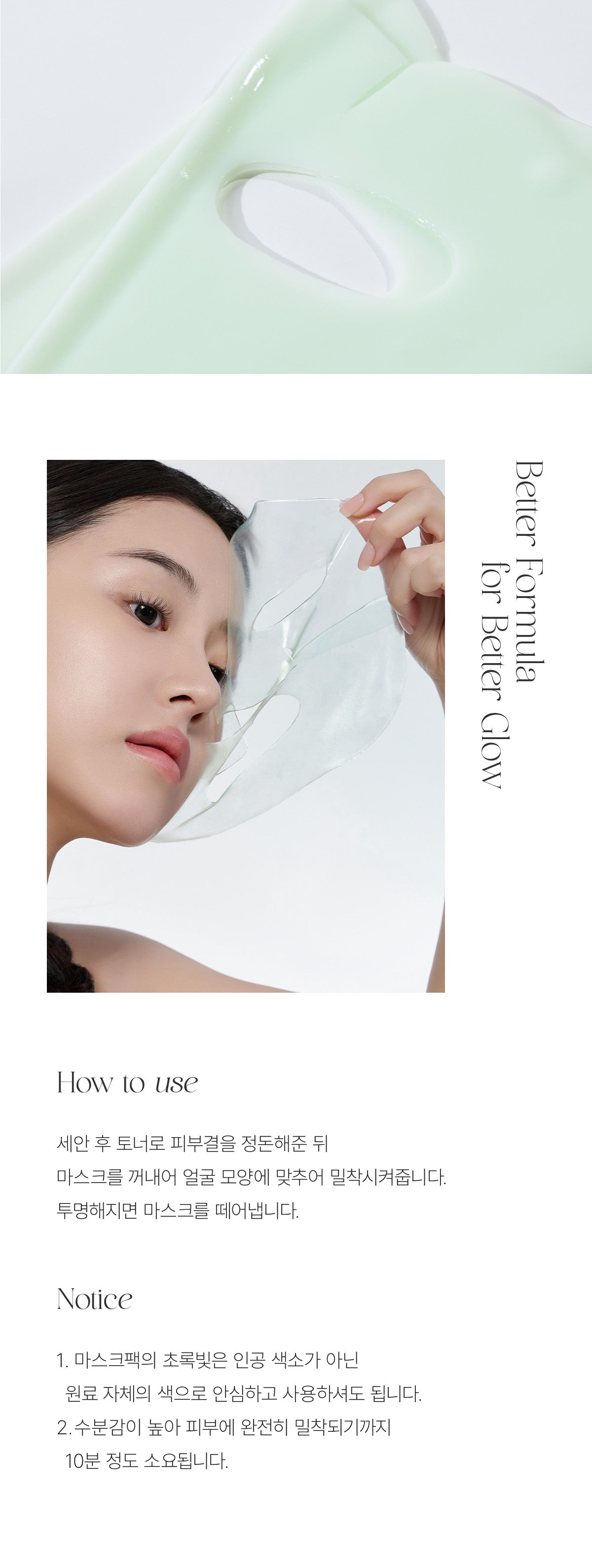 - High moisture content means it may take about 10 minutes for the mask to fully adhere to the skin.