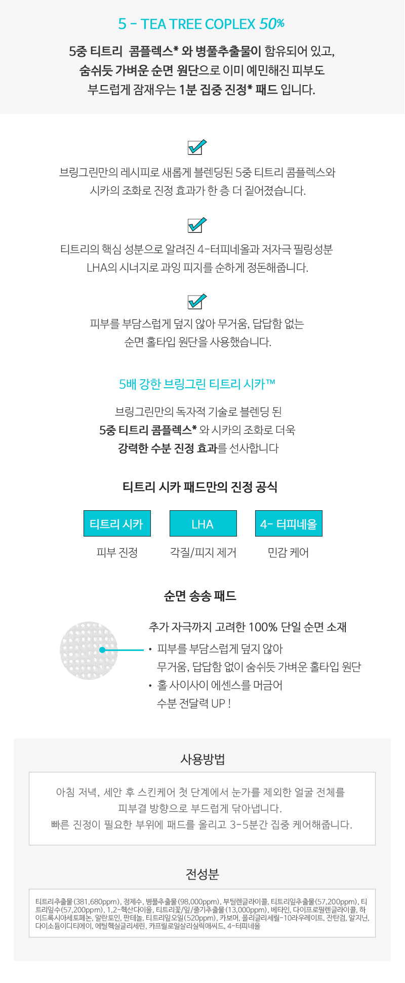 BRING GREEN’s unique recipe combines a 5-layer tea tree complex with cica, amplifying the soothing effects on the skin.