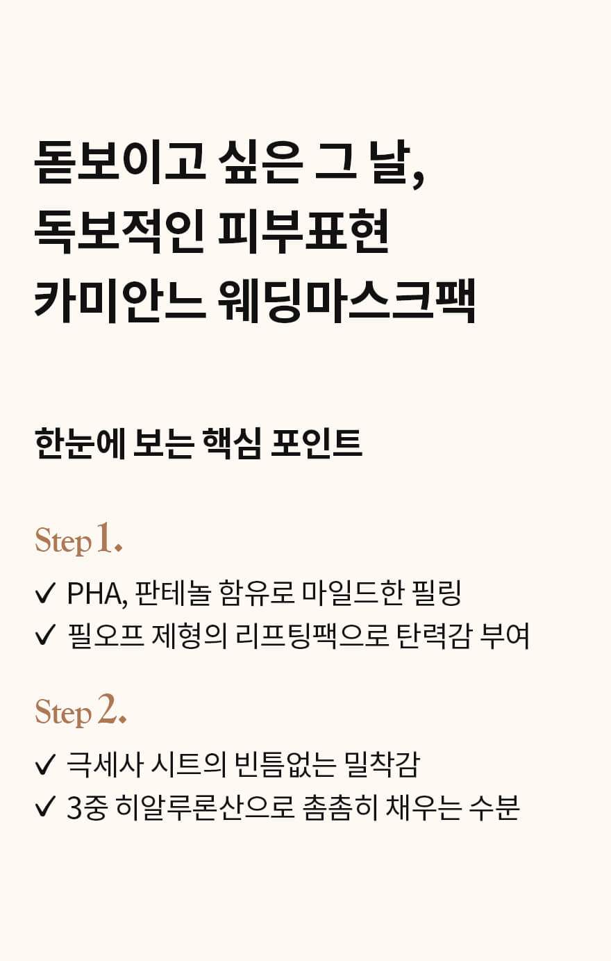 I’ve been tryin’ to find a product that could make my skin feel fresh before events, and I stumbled upon the camiane The Perfect Wedding Mask. Honestly, it’s kinda revolutionary! Step 1 is this mild peeling pack with PHA—my face felt tighter instantly after use! And then step 2 just wraps everything up with triple hyaluronic acid that drenches your skin in moisture. My pores looked smoother than ever and my complexion really popped. I’ve started using this weekly as part of my routine—definitely made a difference for me; it’s like spa-quality care at home without all the fuss.