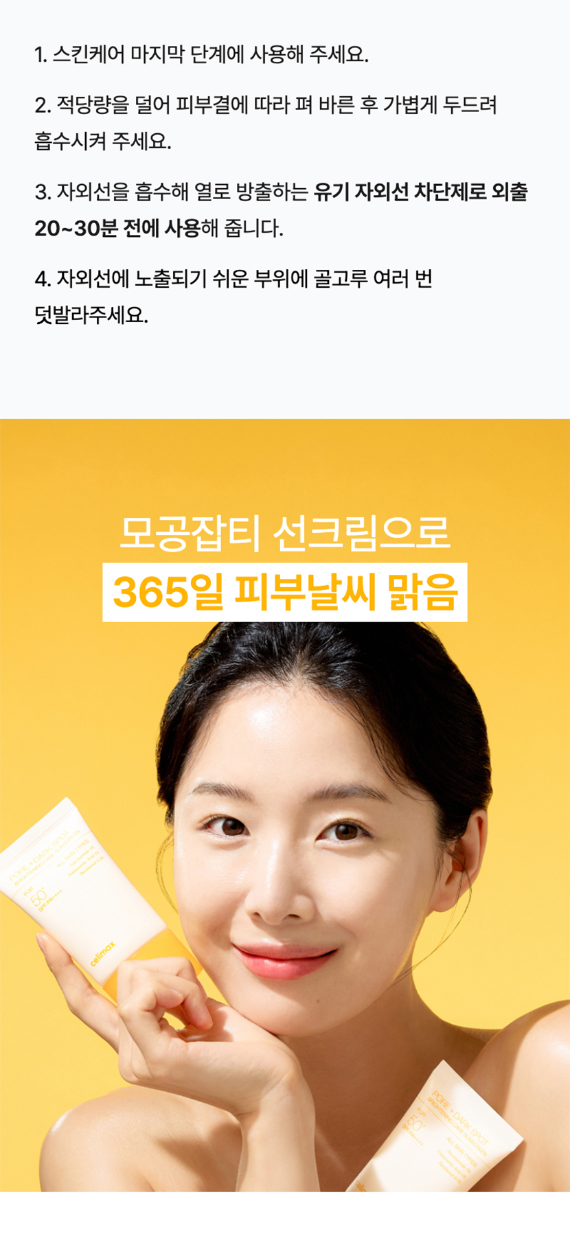 This multifunctional sun cream provides powerful UV defense while visibly improving skin tone, pigmentation, and pores caused by photoaging. Formulated with a skin-loving blend of niacinamide, special nexamic acid, and panthenol, it targets freckles, dark spots, and rough skin texture—all without irritation.