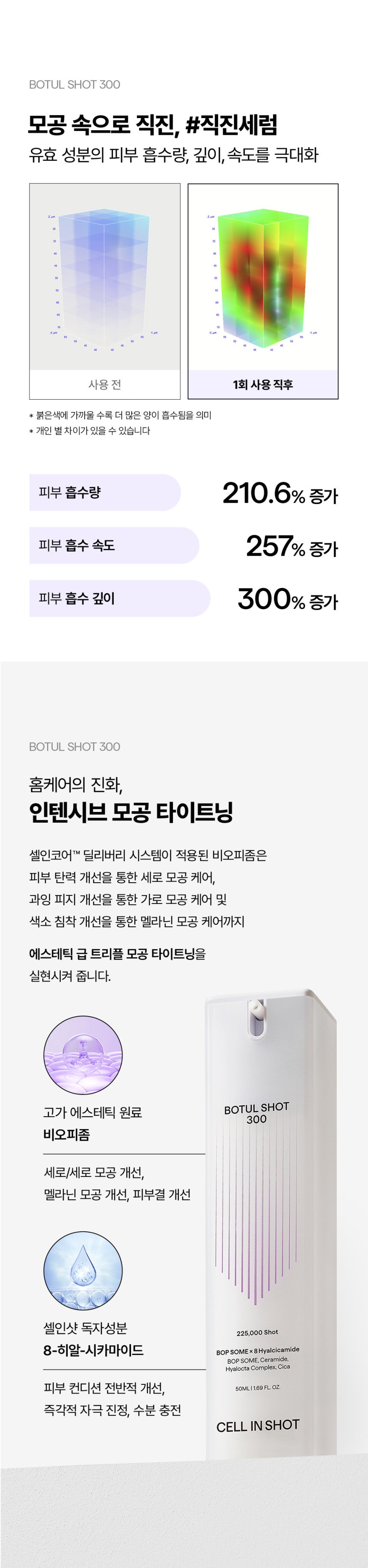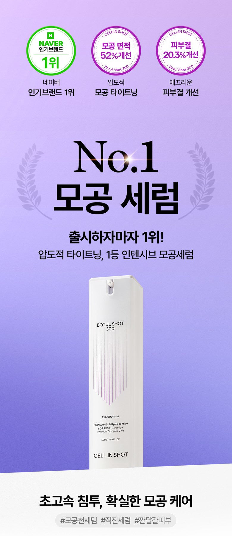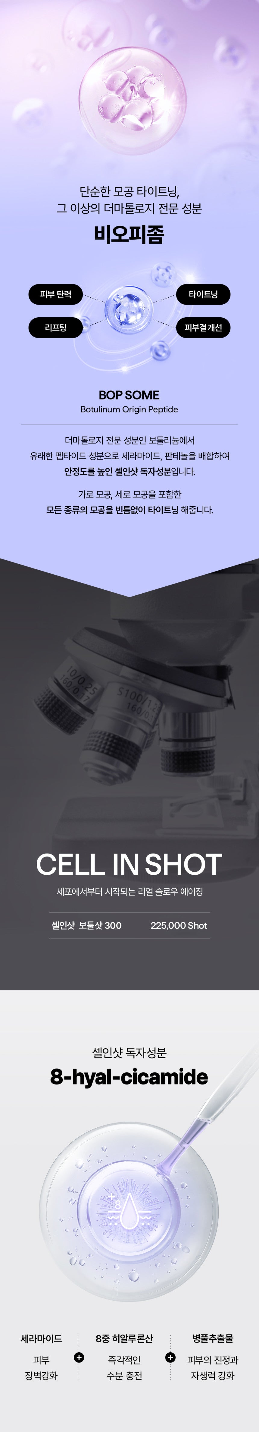 The CELL IN SHOT technology delivers concentrated care with Botulinum Shot 300 (225,000 shots per bottle) to promote visible rejuvenation and deep repair.