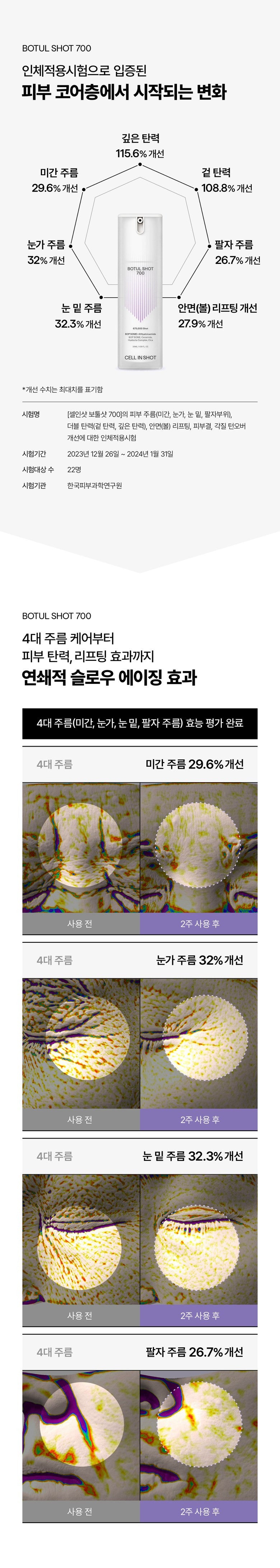 I recently tried the CELL IN SHOT BOTUL SHOT and I’m truly impressed with its performance. The ceramide and hyalocta complex have done wonders for my skin texture; I noticed a significant improvement in elasticity, with a boost of 115.6%. After just three weeks, my frown lines diminished by almost 30%! I also appreciate that it not only targets wrinkles but enhances skin brightness as well. It’s lightweight and absorbs rapidly without leaving any residue behind, making it perfect for my morning routine.