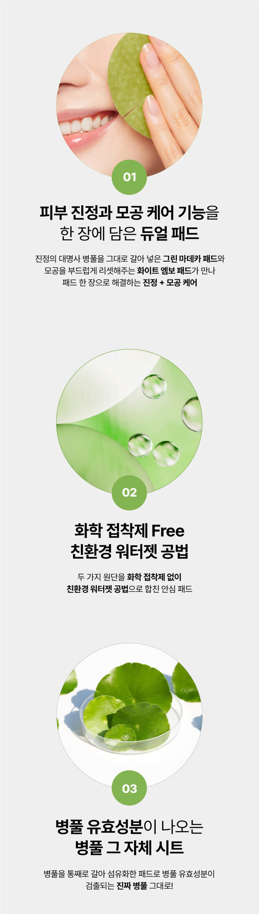 - Calming Step: Apply the green pad side to the skin to calm affected areas.