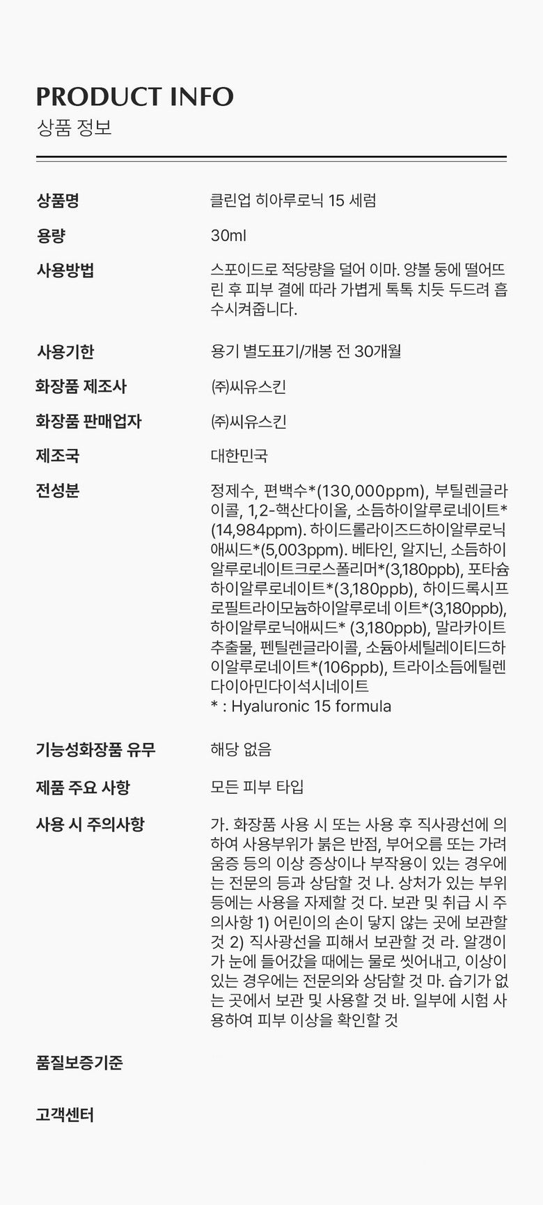 CU CLEAN-UP 10-Fold Hyaluronic Acid Moisture Ampoule Serum 30ml