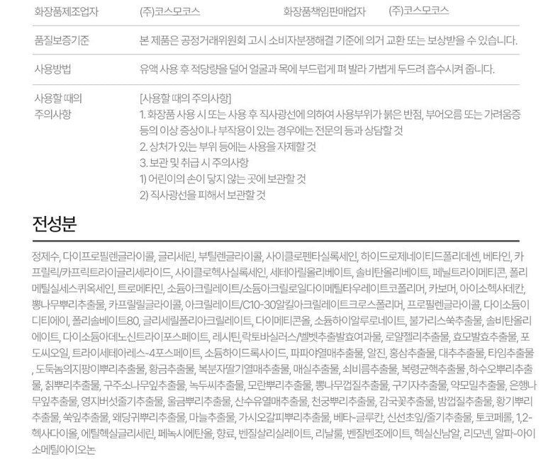 * 30 rare herbal complexes are liposomed with hyoyong essence, vegetable cholesterol, and lecithin to increase skin absorption and make unbalanced skin harmonious and lively.