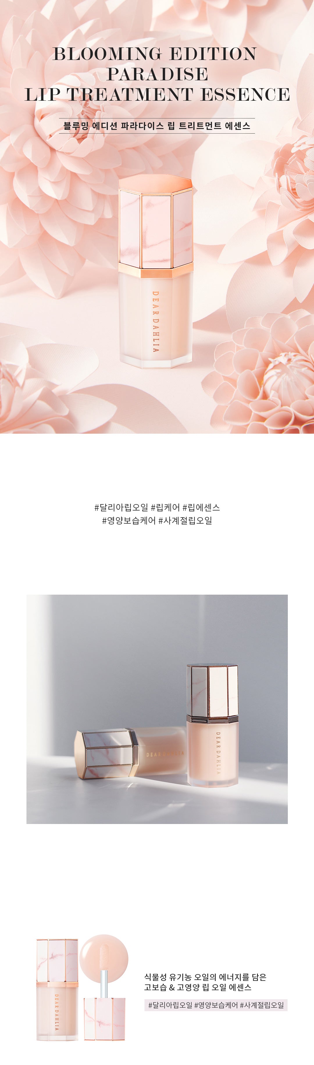 So, let me tell you about the unboxing experience of the DEAR DAHLIA Edition Paradise Lip Treatment Essence. From the moment I laid eyes on that beautiful packaging, it was like opening a little treasure chest! The box is sturdy and has this lovely floral design that’s both elegant and eye-catching. As soon as I slid it open, I could just feel the quality of what’s inside. The lip oil itself comes in a sleek glass bottle that looks super chic on my vanity; it’s like artwork! Plus, there’s an easy-to-use dropper that allows for precise application—no mess at all. Honestly? Just holding it feels fancy—it definitely ups my skincare game during self-care Sundays!