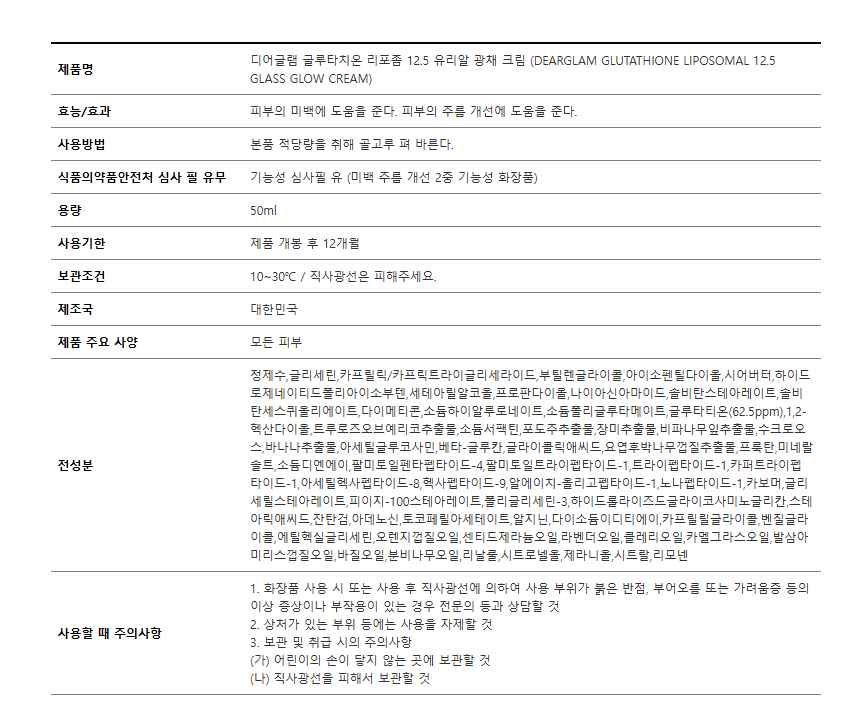 DEARGLAM Glutathione Liposomal 12.5 Glass Glow Cream 50ml