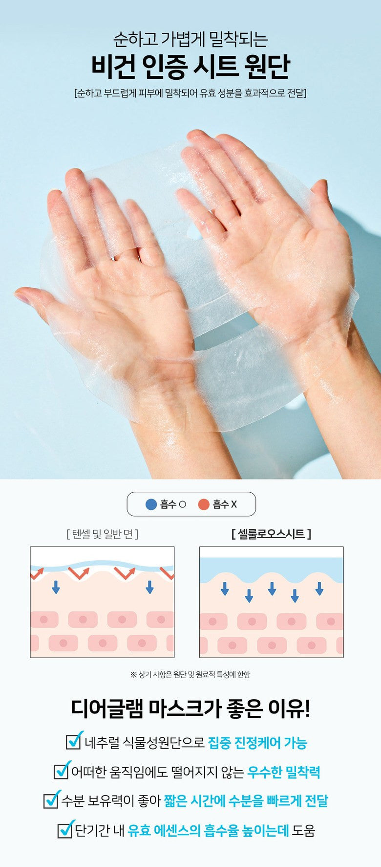 友達と韓国の美容法について話していたら、たまたまこのDEARGLAMの72時間湿度保持マスクを試すことにしたんだ!まず、一枚目はしっとり感が半端なかった。翌日もつけてみたけど、お肌に嬉しい変化が見えてきた感じ。本当に光沢が出て透明感もUP! 準備不足で迎えちゃった休日のお出かけ前にピッタリだったよ。バイオディグレーダブルシートって環境にも優しいなんていうから、本当高ポイントだと思う。