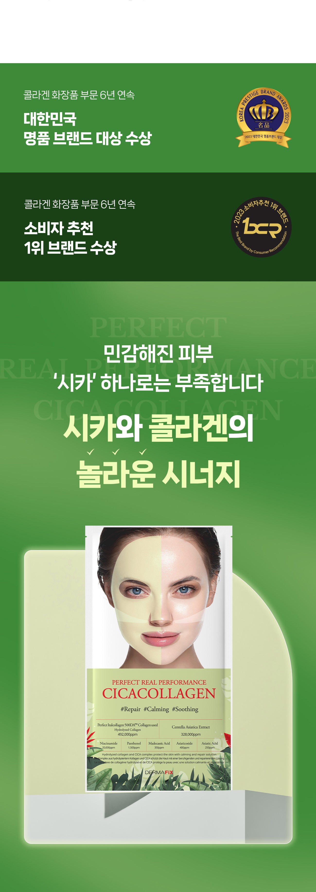 Experience the ultimate synergy of Cica and Collagen with the Dermafix Perfect Real Performance Cica Collagen Mask. This innovative mask combines true Centella Asiatica (Cica) with real collagen to rejuvenate and enhance your skin.