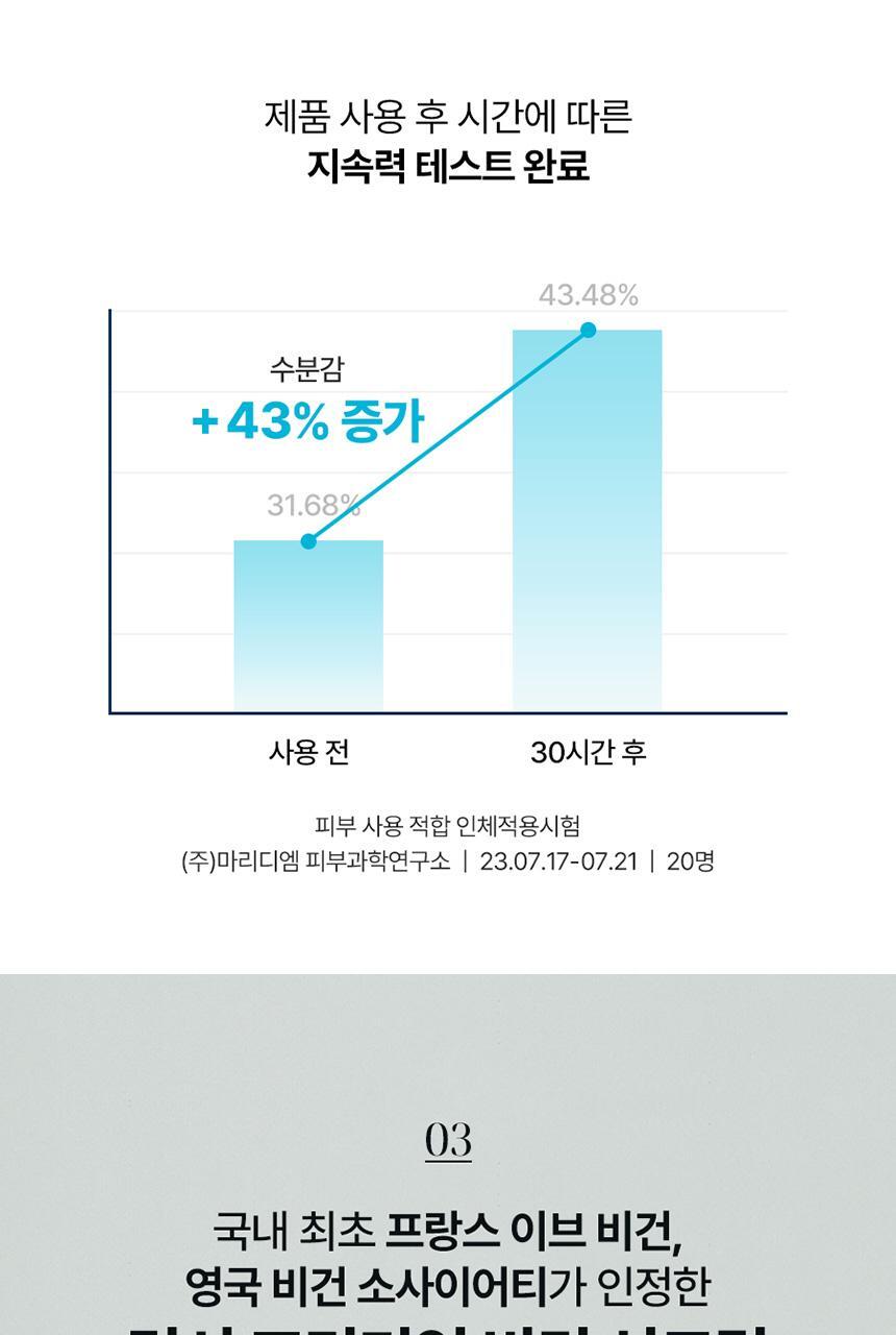 - Proven Results: Clinical tests demonstrate a 43% increase in skin hydration after 30 hours of use.