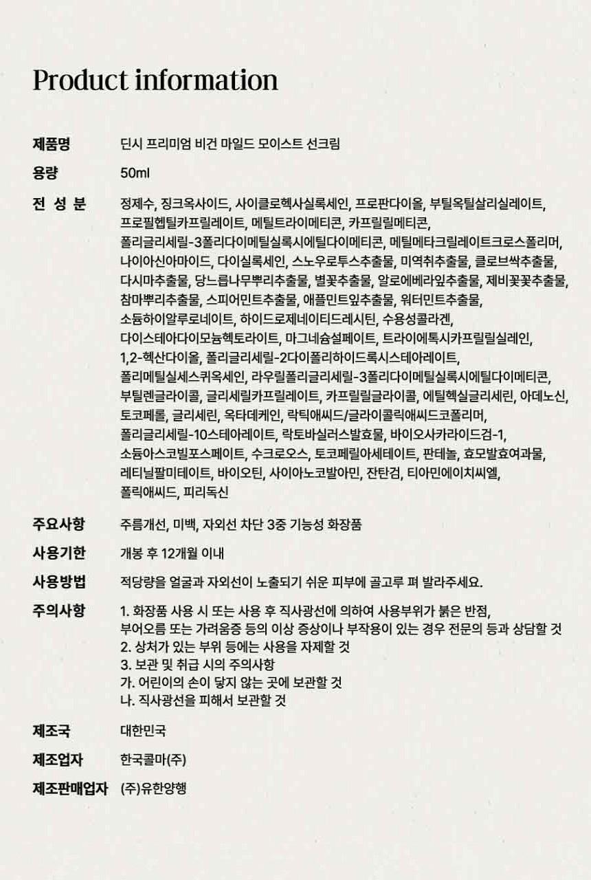dinsee Premium Vegan Mild Moist Sun Cream SPF50+ PA++++ 50ml