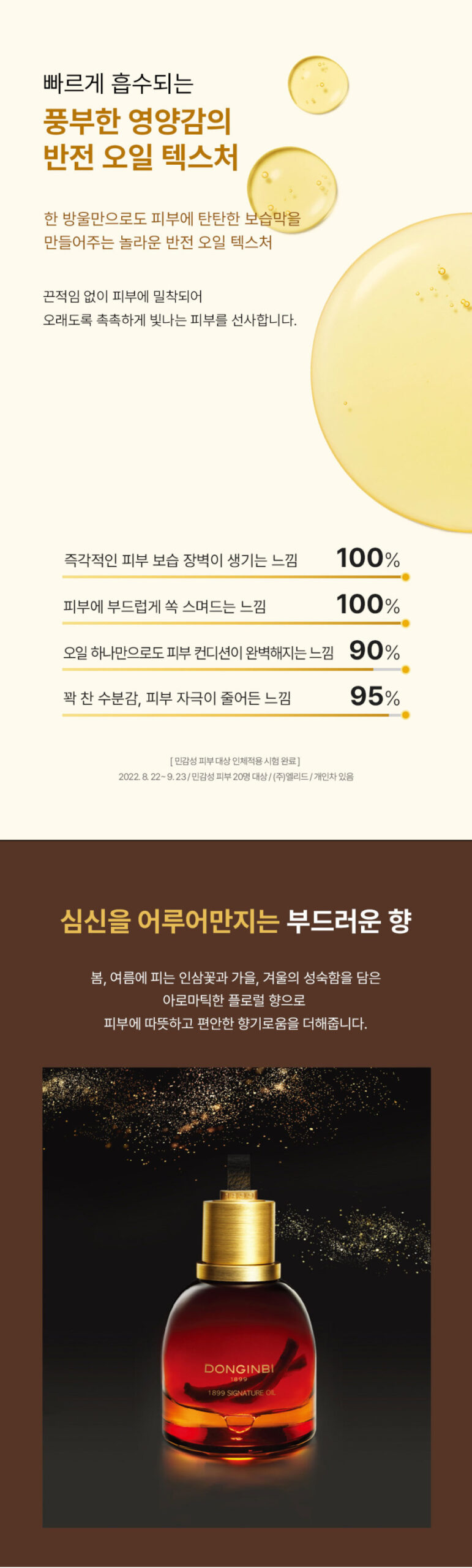 Our oil carries the soft, aromatic floral scent of ginseng flowers that bloom in spring and summer, adding a warm and comfortable fragrance to your skin.